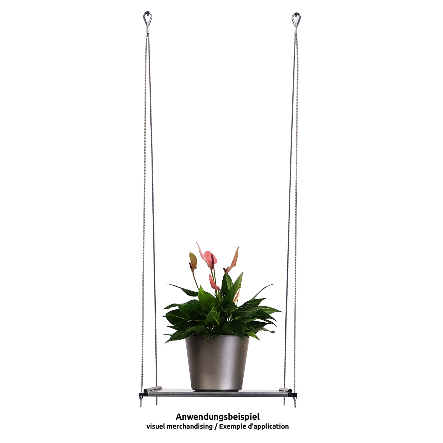 - Kleinste Dimension findet selbst in beengten Räumen ohne Stellfläche seinen Platz: 92711 FILO Rahmen S: L 32 x B 30 cm und 92706 FILO Stahl Drahtseil: L 360 cm (einfache Länge 180 cm)