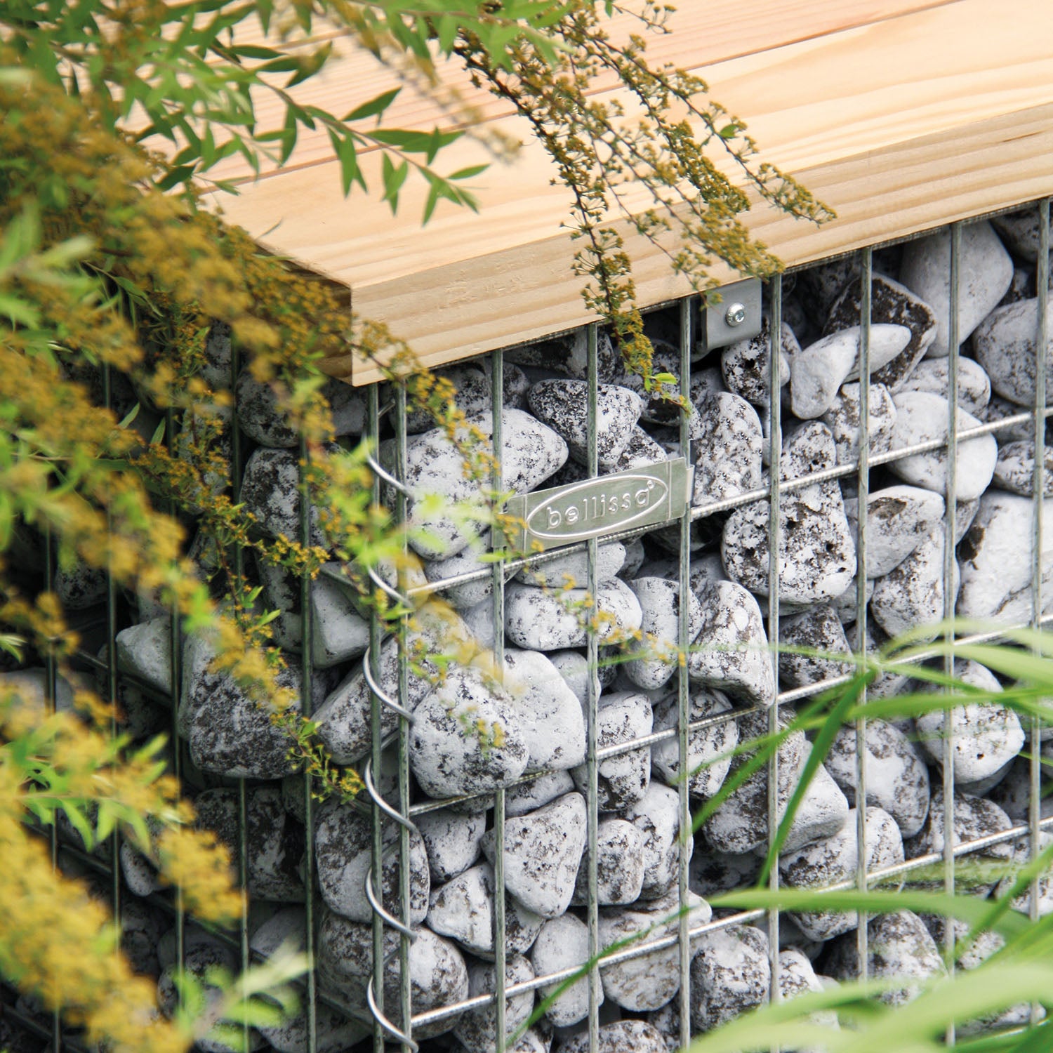 Die Bellissa Gabionenbank ist eine hochwertige Gartenbank, die aus einer Kombination von Gabionen und einer Sitzfläche aus Douglasienholz besteht.