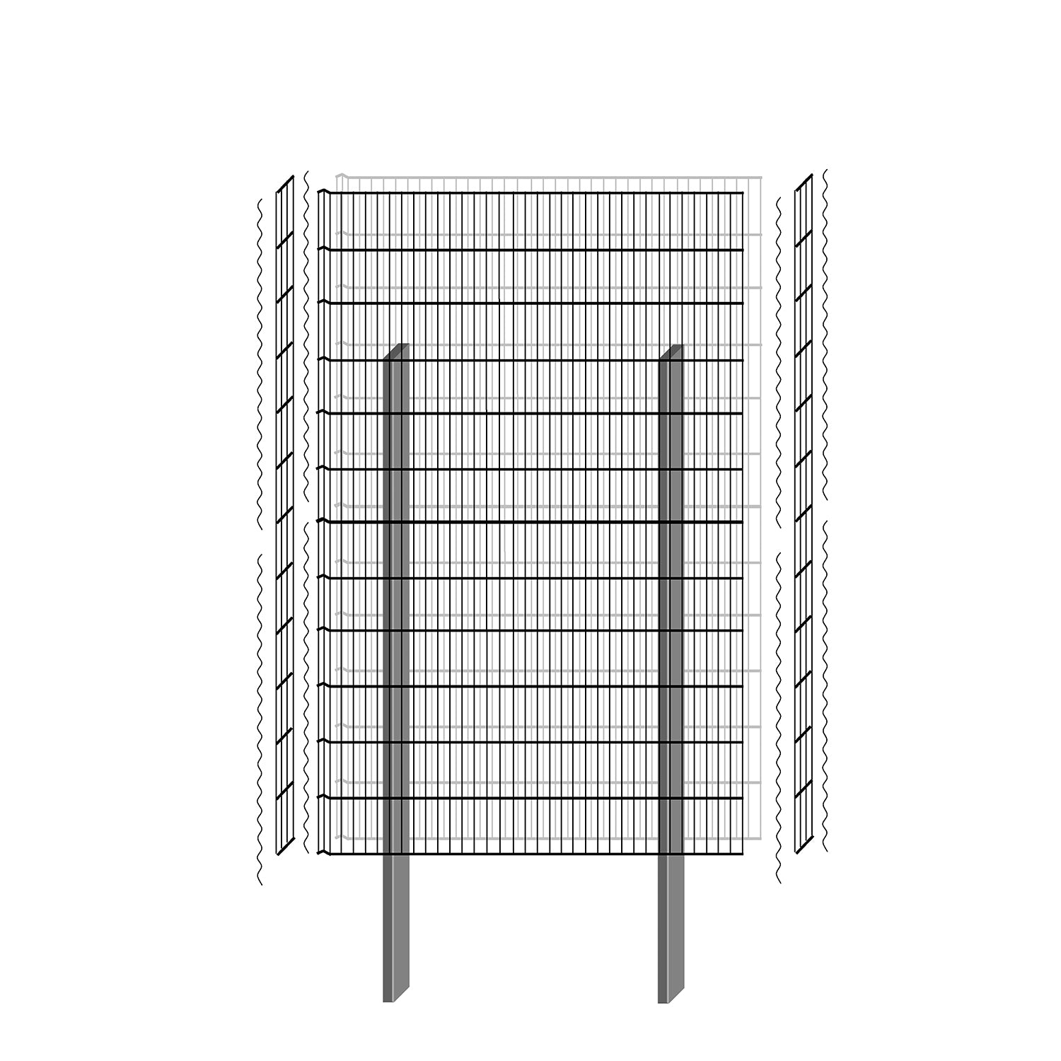 Inhalt: 2 Gitter in der angegebenen Höhe, Verbindungshaken für Gitter, Abschlussgitter beidseitig, Verbindungsspiralen für Abschlussgitter, 2 Pfosten mit Abdeckkappe.
