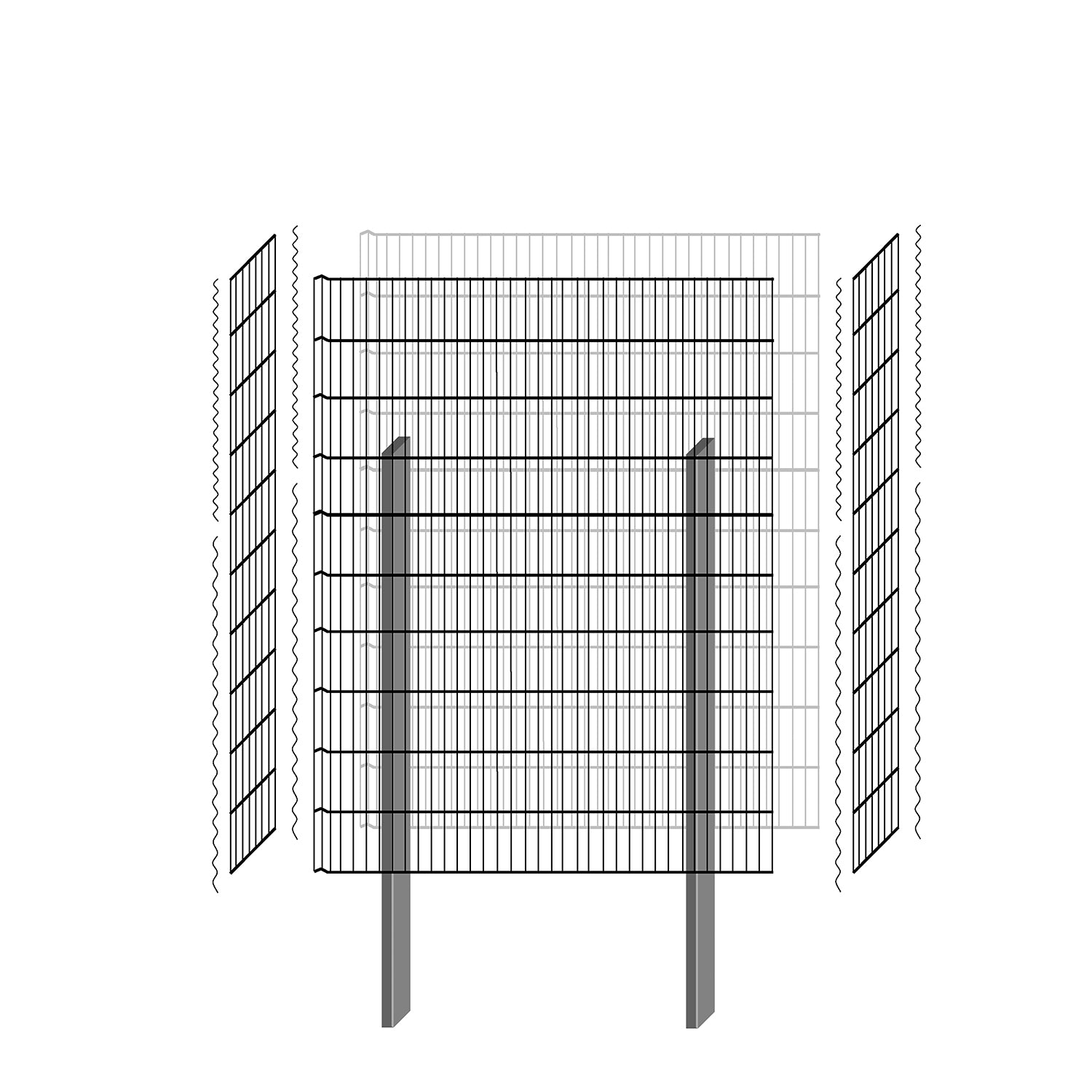 Inhalt: 2 Gitter in der angegebenen Höhe, Verbindungshaken für Gitter, Abschlussgitter beidseitig, Verbindungsspiralen für Abschlussgitter, 2 Pfosten mit Abdeckkappe, Verbindungshaken für Pfosten, 4 Verbindungsstäbe.