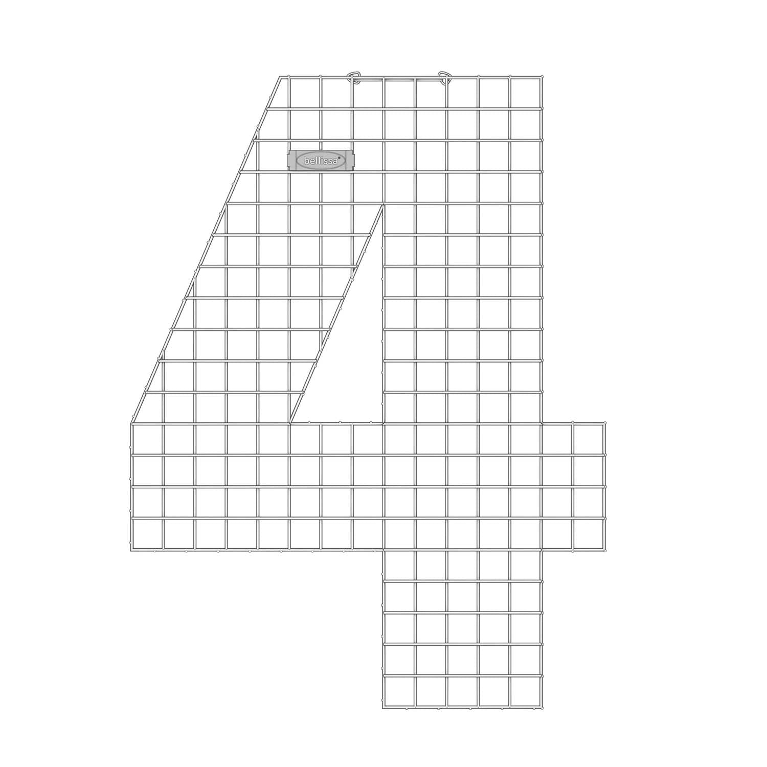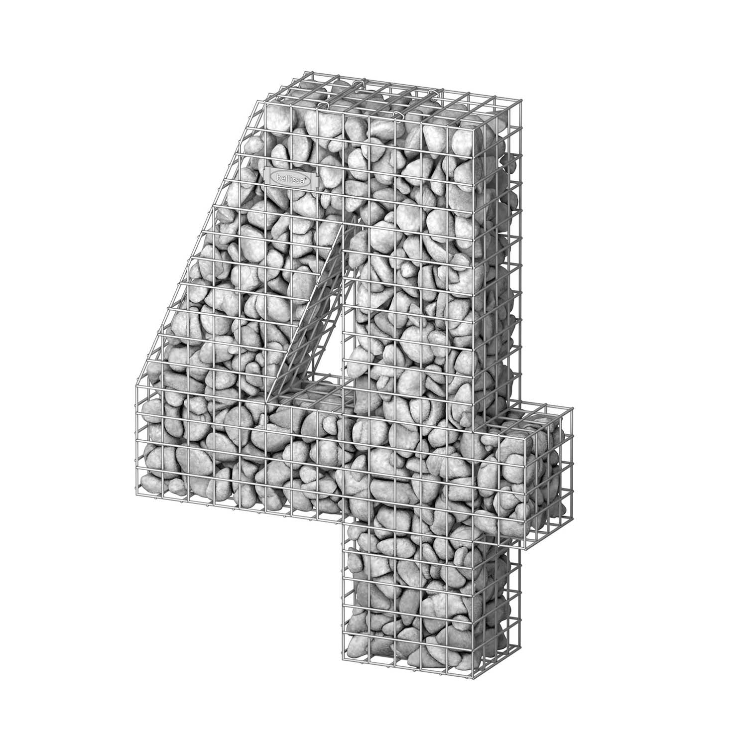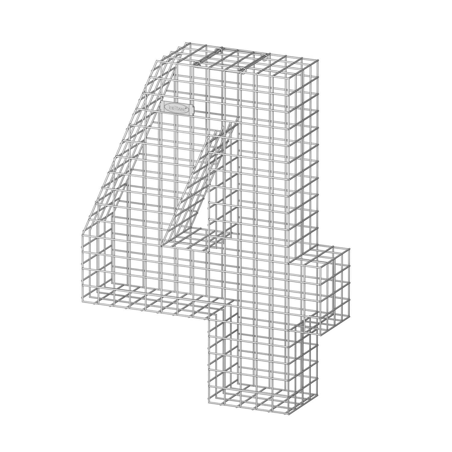 Die Gabionenziffer 4 ist ein dekoratives Element für den Garten, geformt wie die Zahl 4 und mit Steinen befüllbar.