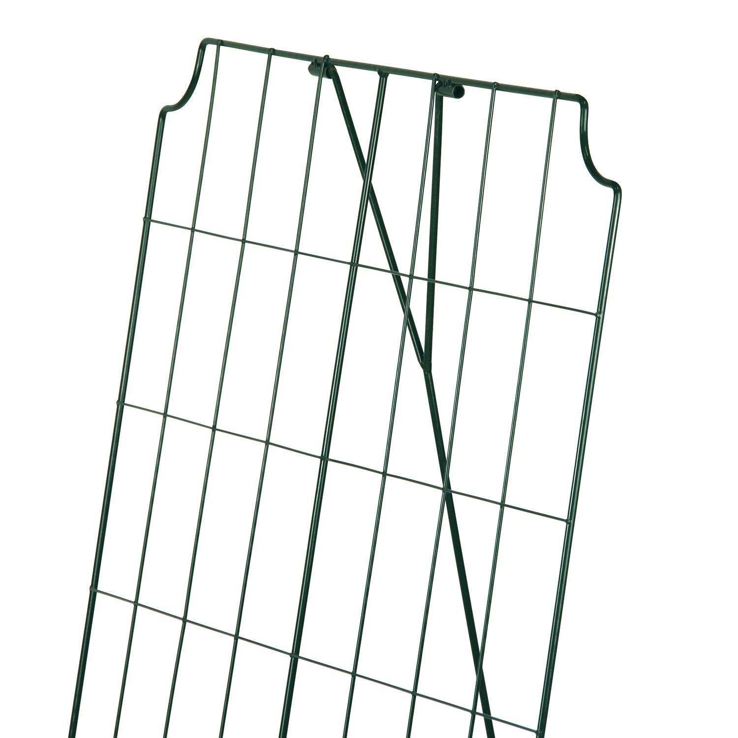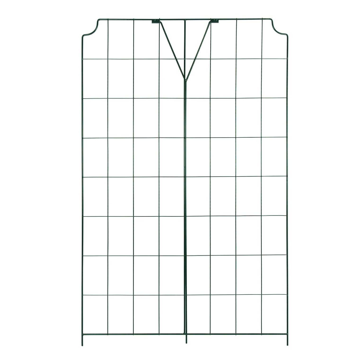Das Gitter misst 121 cm in der Länge und 77 cm in der Breite. Es ist aus einem robusten, grün beschichteten Metall gefertigt, das für den langfristigen Einsatz im Freien konzipiert ist.