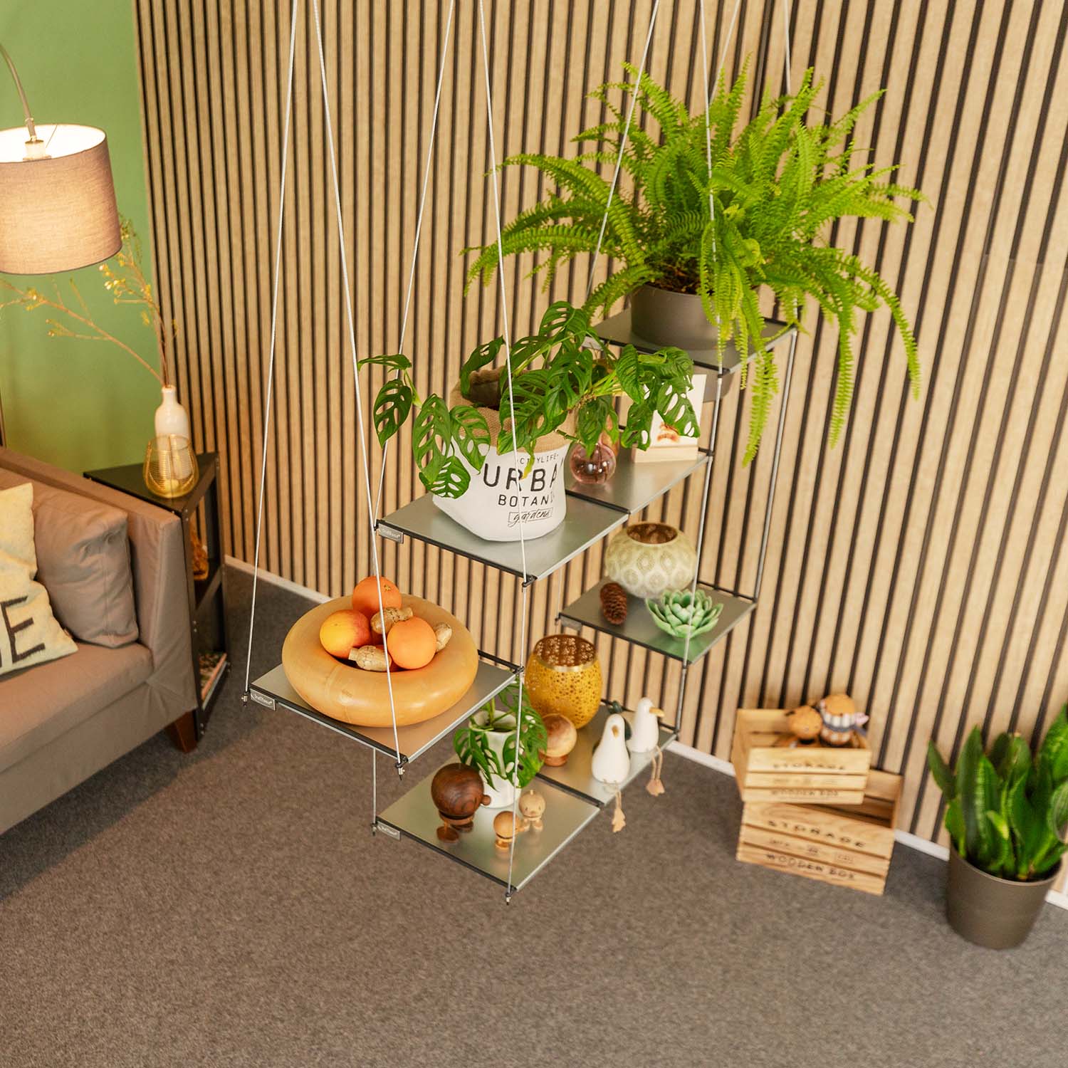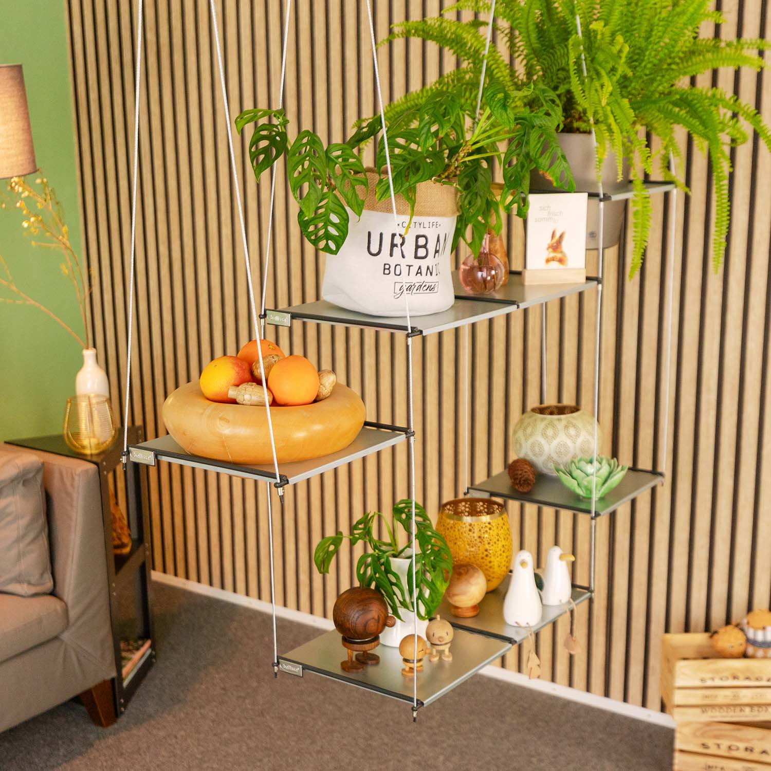 Das Hängeregal FILO Flora ermöglicht durch sein flexibles Baukastensystem eine einfache Anpassung und Erweiterung, je nach den räumlichen Gegebenheiten und persönlichen Bedürfnissen.