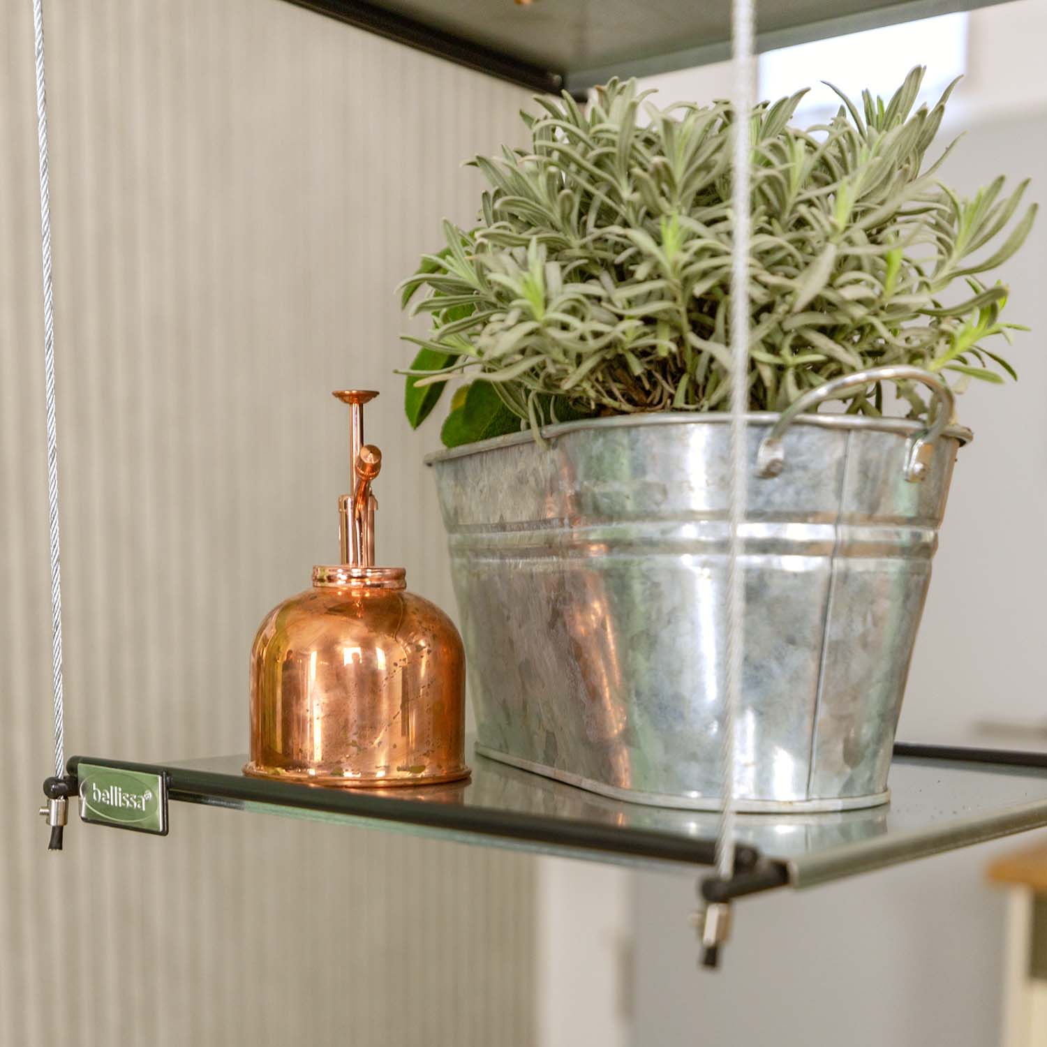 Durch das flexible Regalsystem kann das Hängeregal individuell angepasst werden, von einem vorselektierten Set über drei Ebenen bis hin zu einer unendlich erweiterbaren Lösung.