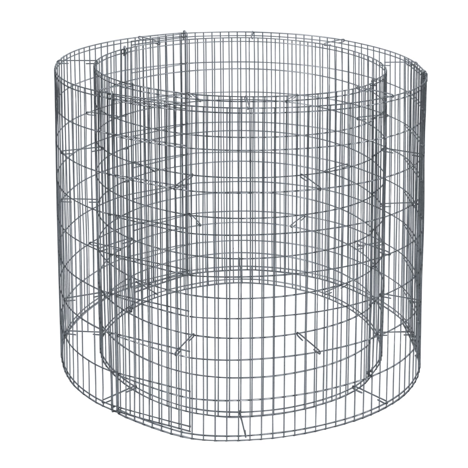 Größe: Ø 240 cm, H. 40 cm | Wandung: 10 cm | Steinbedarf: ca. 460 kg | Füllmenge Erde: ca. 1520 l | Steinkörnung: ca. 25 - 60 mm | Maschenweite: 25 x 100 mm | Drahtstärke: 2,5/2 mm | Gewicht: 11,9 kg.