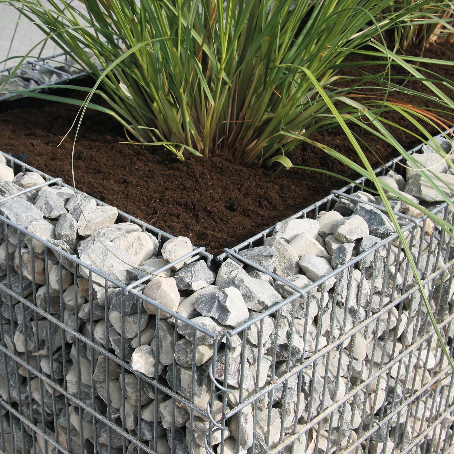 Bei einer ausgefallenen Bepflanzung ziehen sie alle Blicke auf sich und können gleichzeitig als Begrenzung oder Sichtschutz dienen. Sie sind kürzbar, oder durch ein zweites Hochbeet erweiterbar. Die Montage erfolgt durch Verbindungsspiralen. Die Zink-Aluminium Verzinkung schützt die Gitter sehr lange vor Witterungseinflüssen.