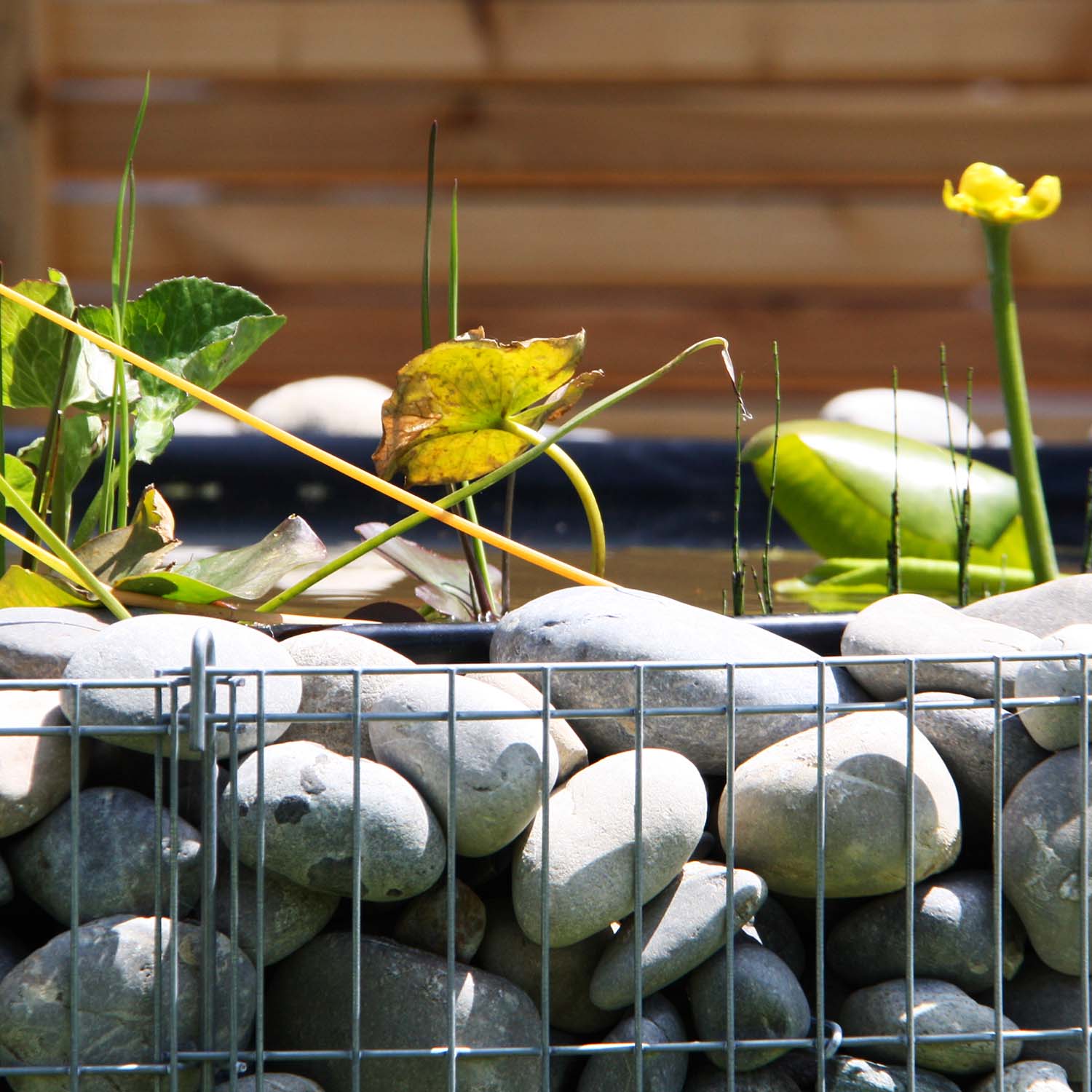 Dieser Gartenteich ist ein absoluter Hingucker und bereichert neben Ihrem Außenbereich und Flora und Fauna auch Ihr seelisches Wohlbefinden. Seine äußere Gitterstruktur bietet sich vor allem für das Bewachsen mit Kletterpflanzen an. Dadurch verleihen Sie Ihrem Teich einen urigen Charakter. Im oberen Bereich gibt es eine größere horizontale Fläche, um auch Pflanzen der Trockenzone anzupflanzen.