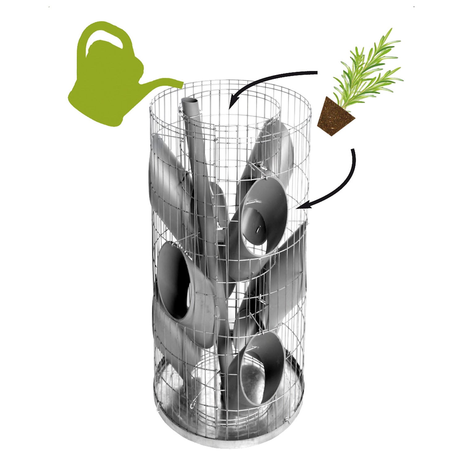 Der Bellissa Kräuterturm ist ein vertikales Pflanzgefäß aus feuerverzinktem Stahl, das ideal für den Anbau von Kräutern und Blumen auf kleinem Raum ist.
