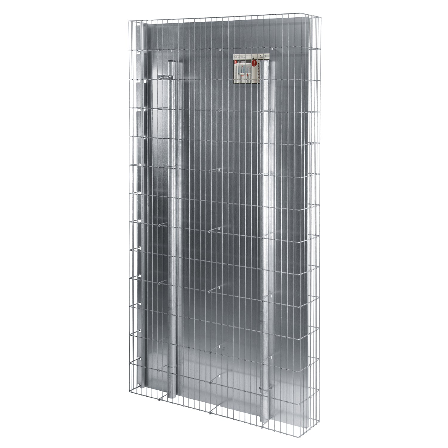 Die Gabione wird mit nicht sichtbaren Rundpfosten geliefert, die durch Einbetonieren befestigt werden müssen.