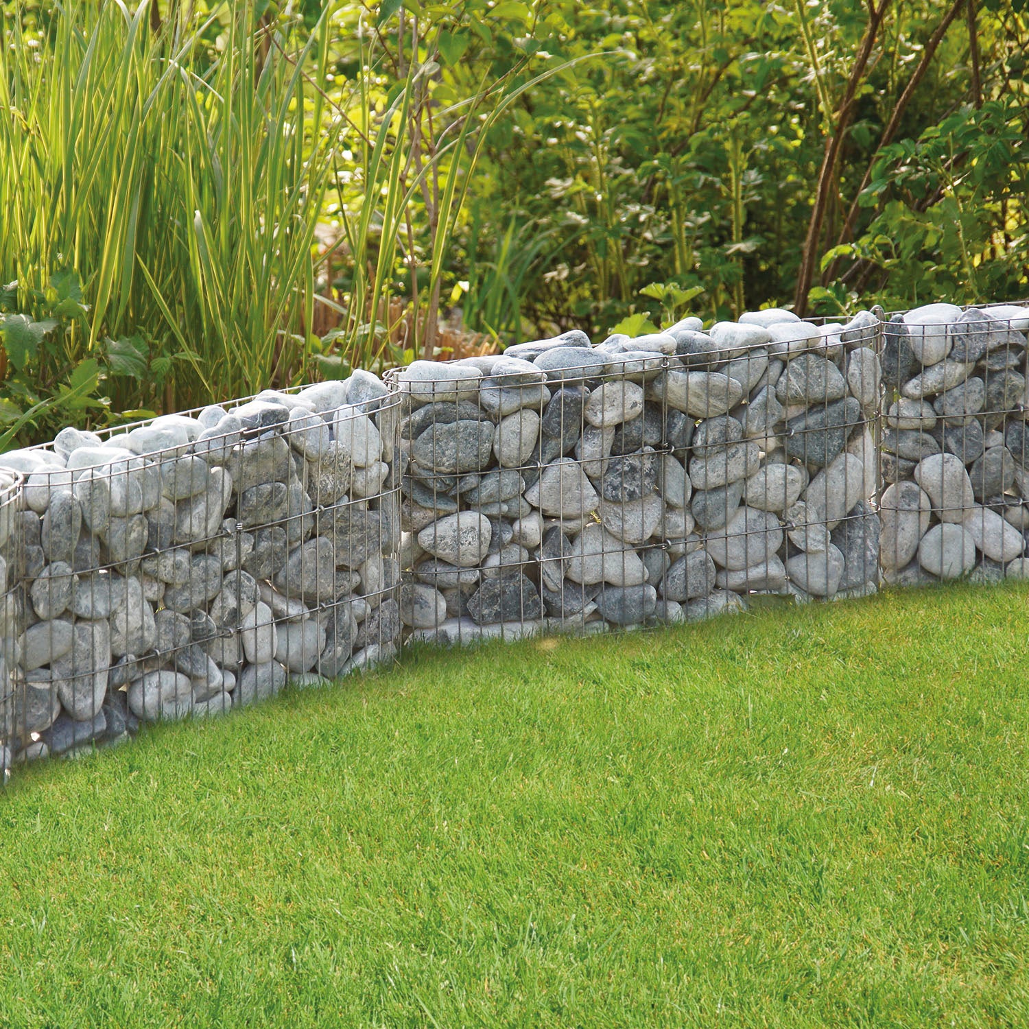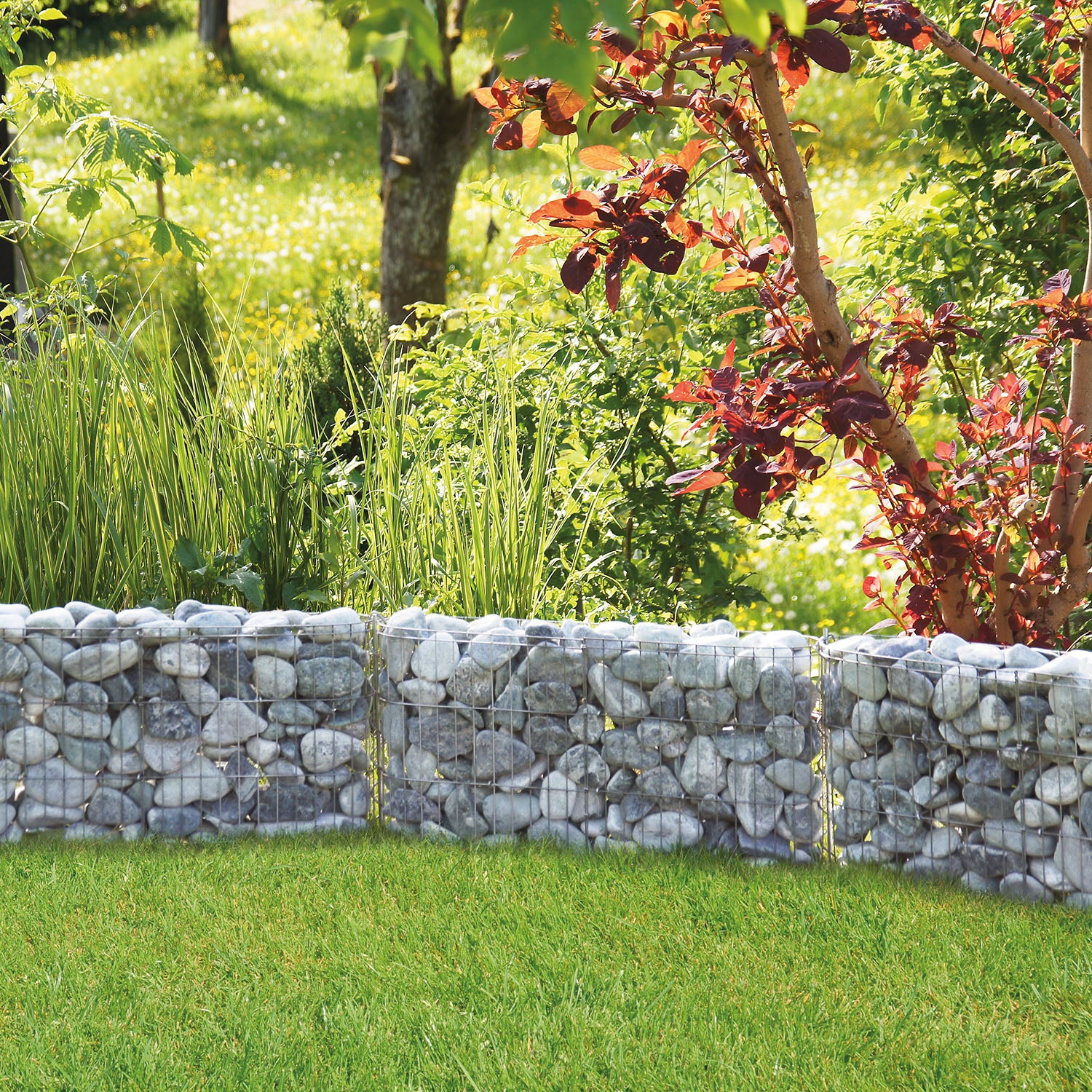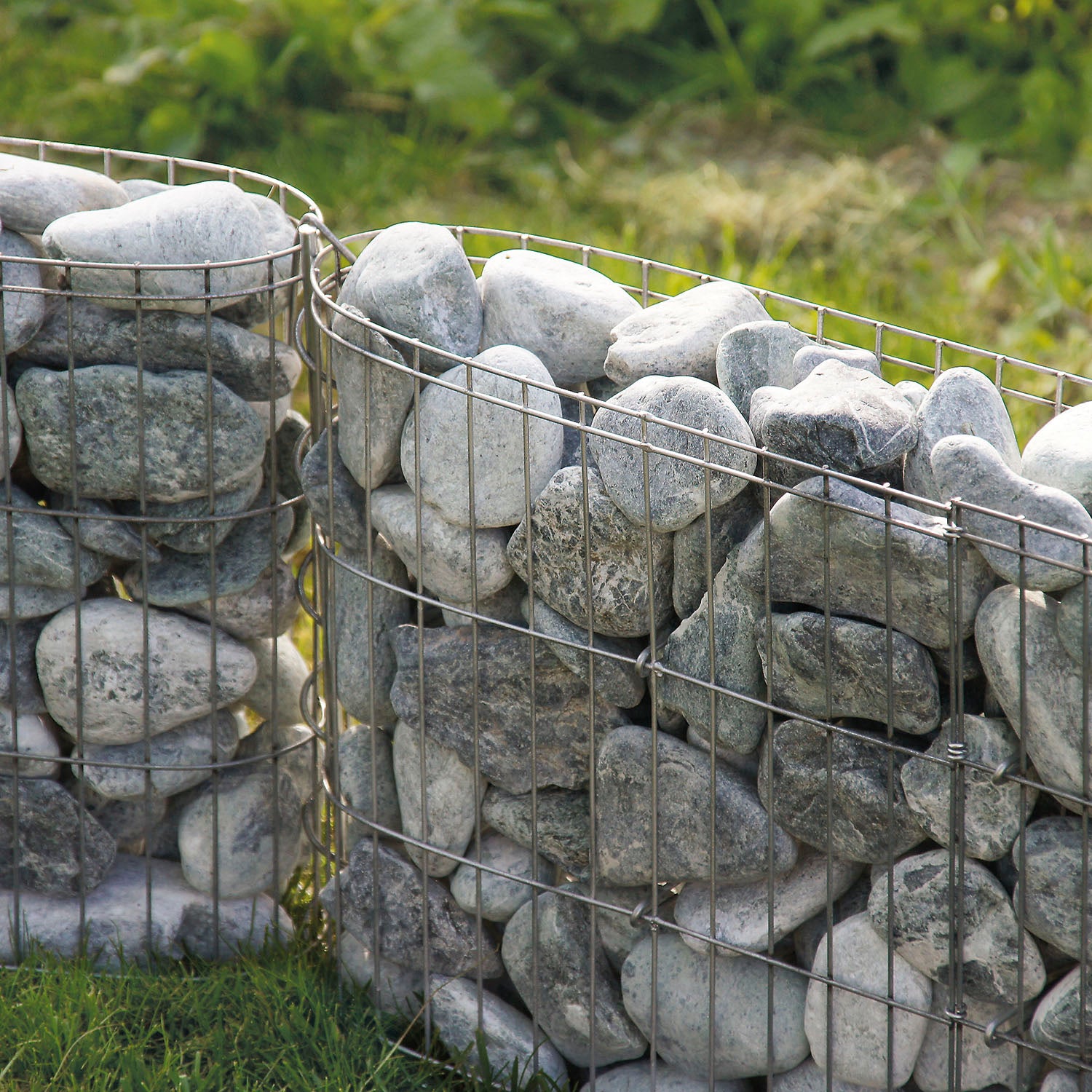 Die Gabione besteht aus verzinktem Stahl, was sie langlebig und wetterfest macht.