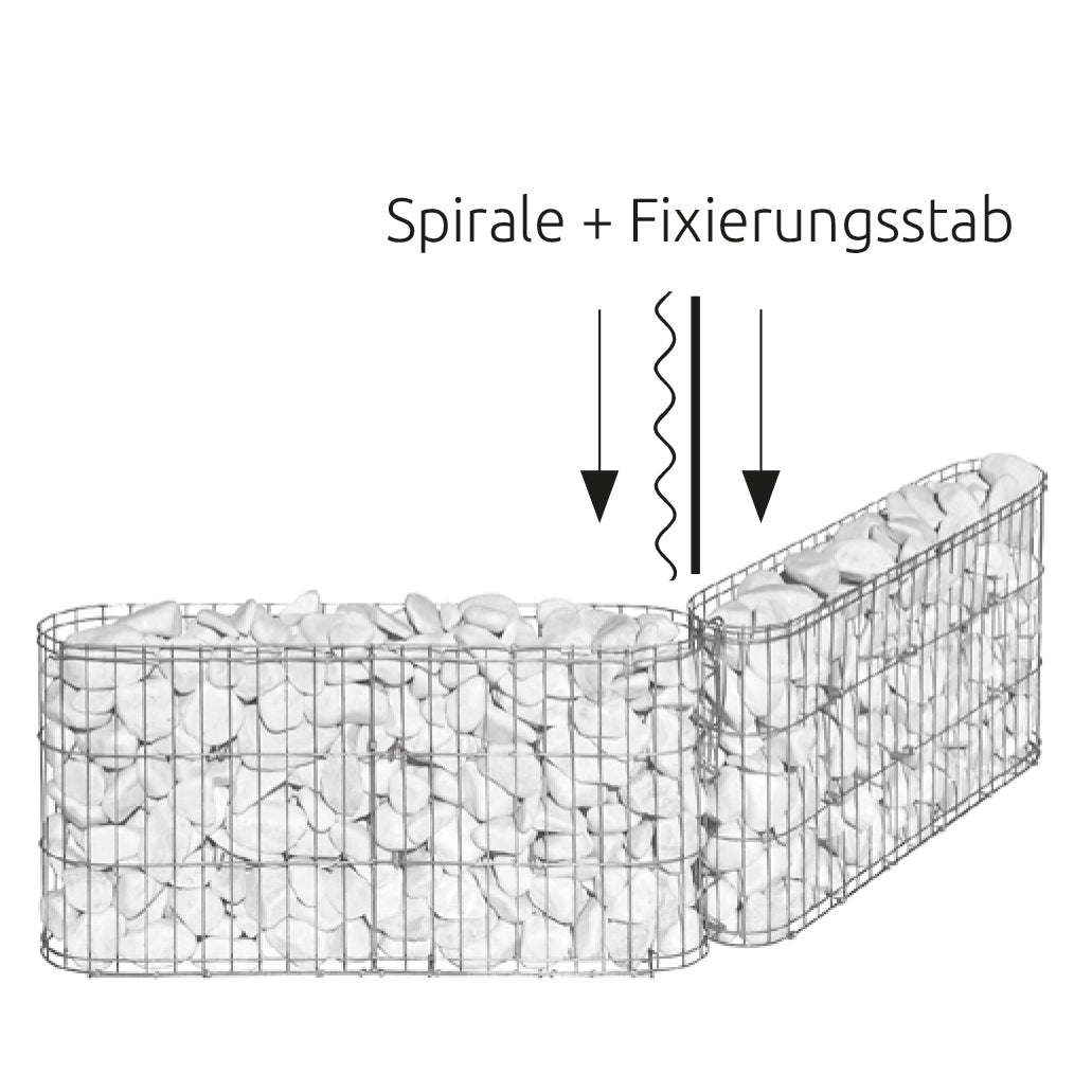 Einfachster Aufbau - die Gabionen sind fertig montiert und müssen nur noch mit Steinen befüllt werden. Verbindung mittels Spiralen, zusätzliche Fixierung durch Bodenstab.