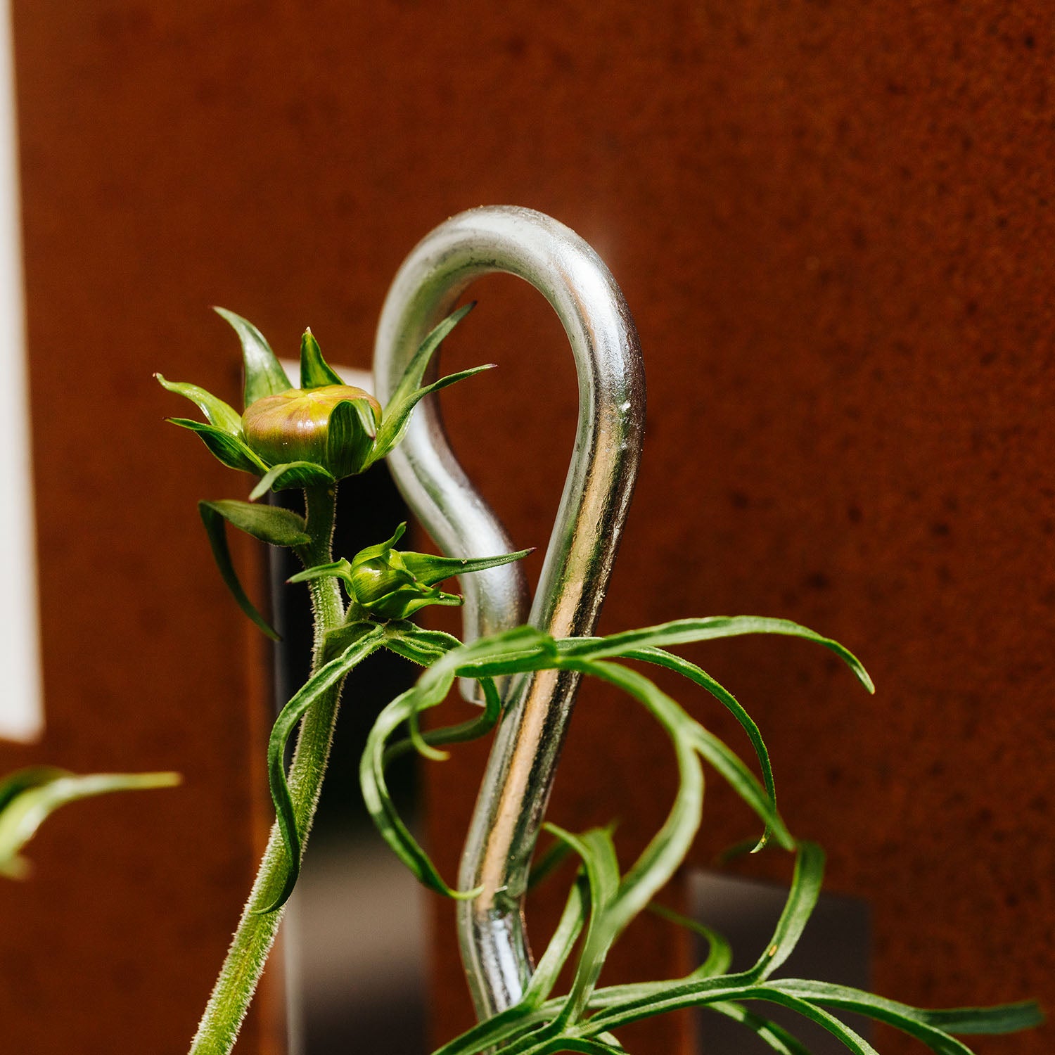 Die Stütze wird einfach in den Boden gesteckt und dient als stabile Unterstützung für hohe Pflanzen wie Dahlien, die dadurch besser vor Wind und anderen Einflüssen geschützt sind.