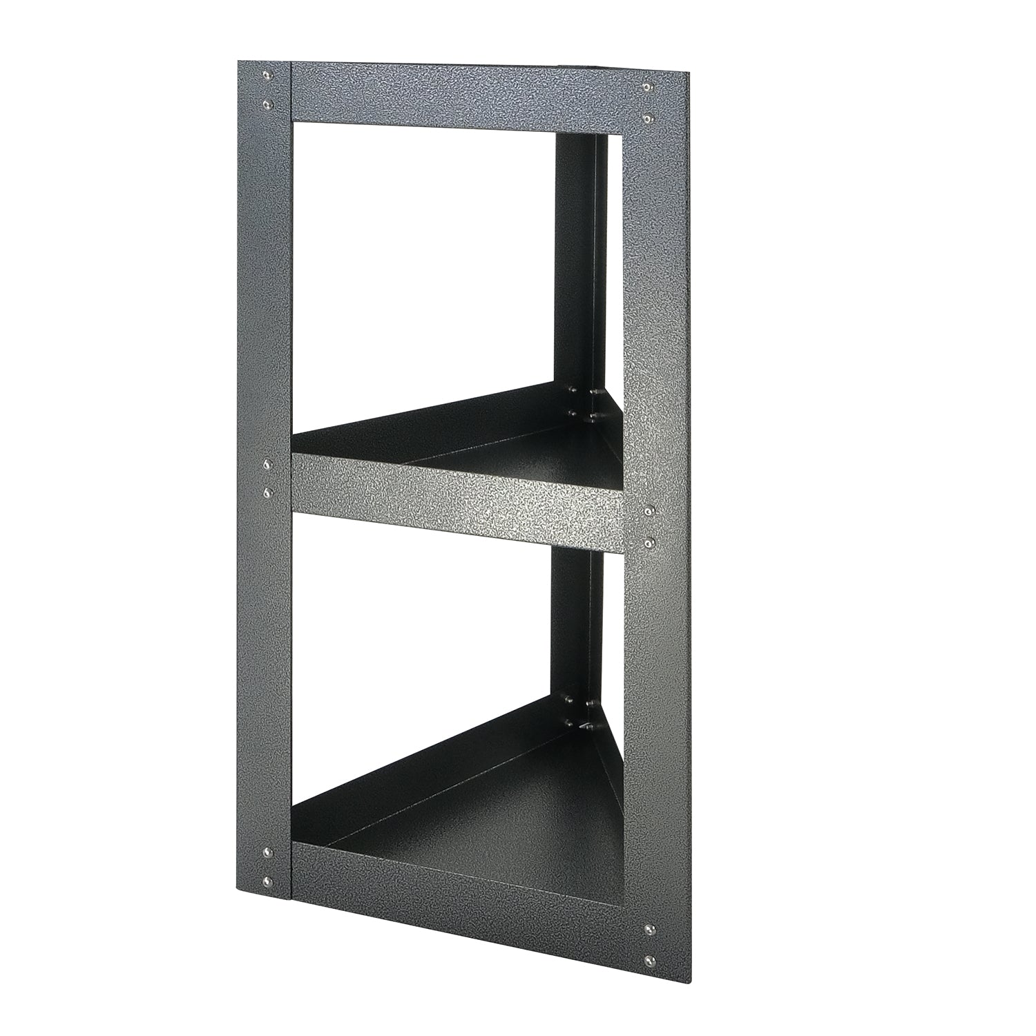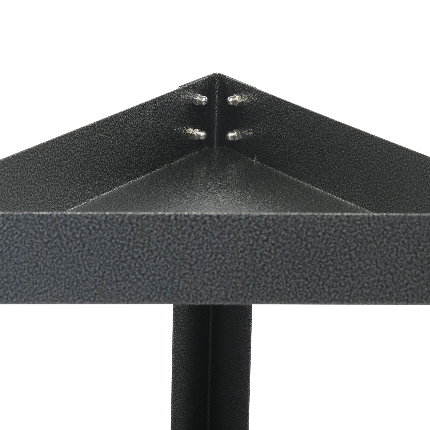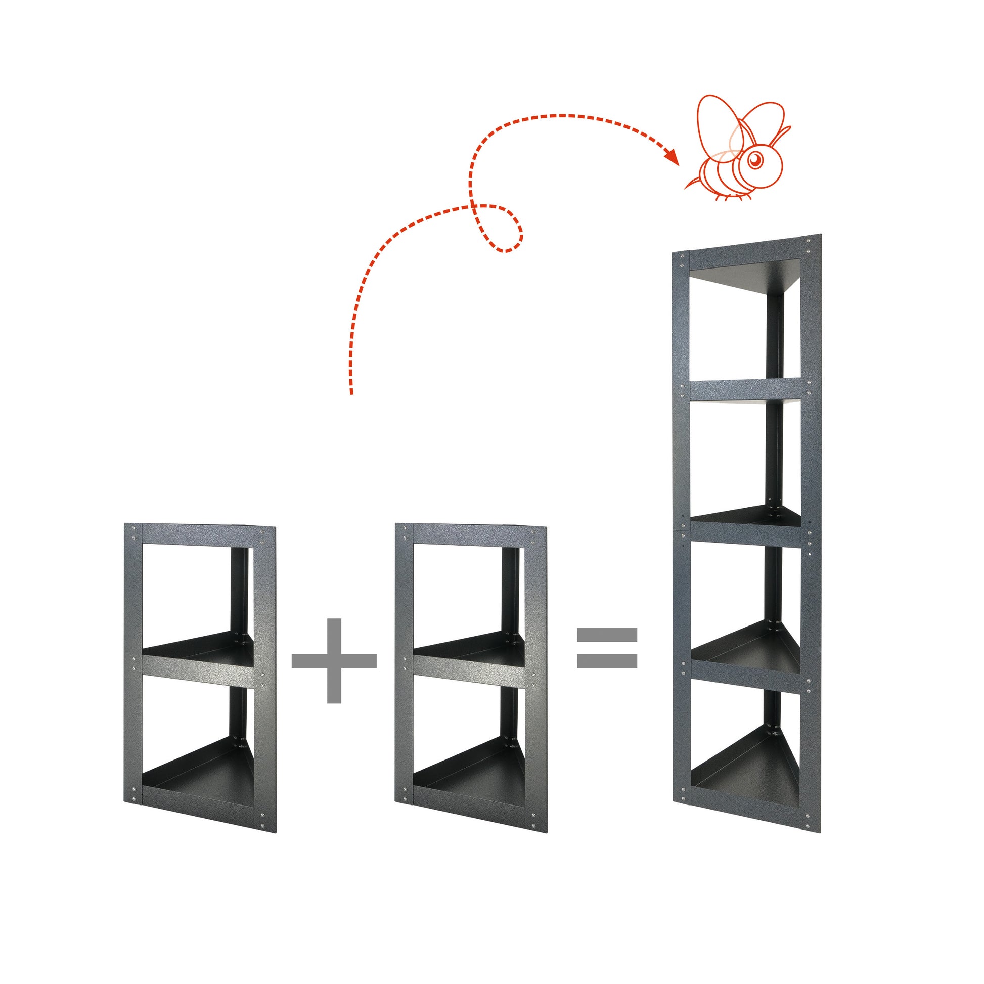 Das Regal ist aus stabilem, verzinktem Stahl gefertigt, was es witterungsbeständig und langlebig macht.