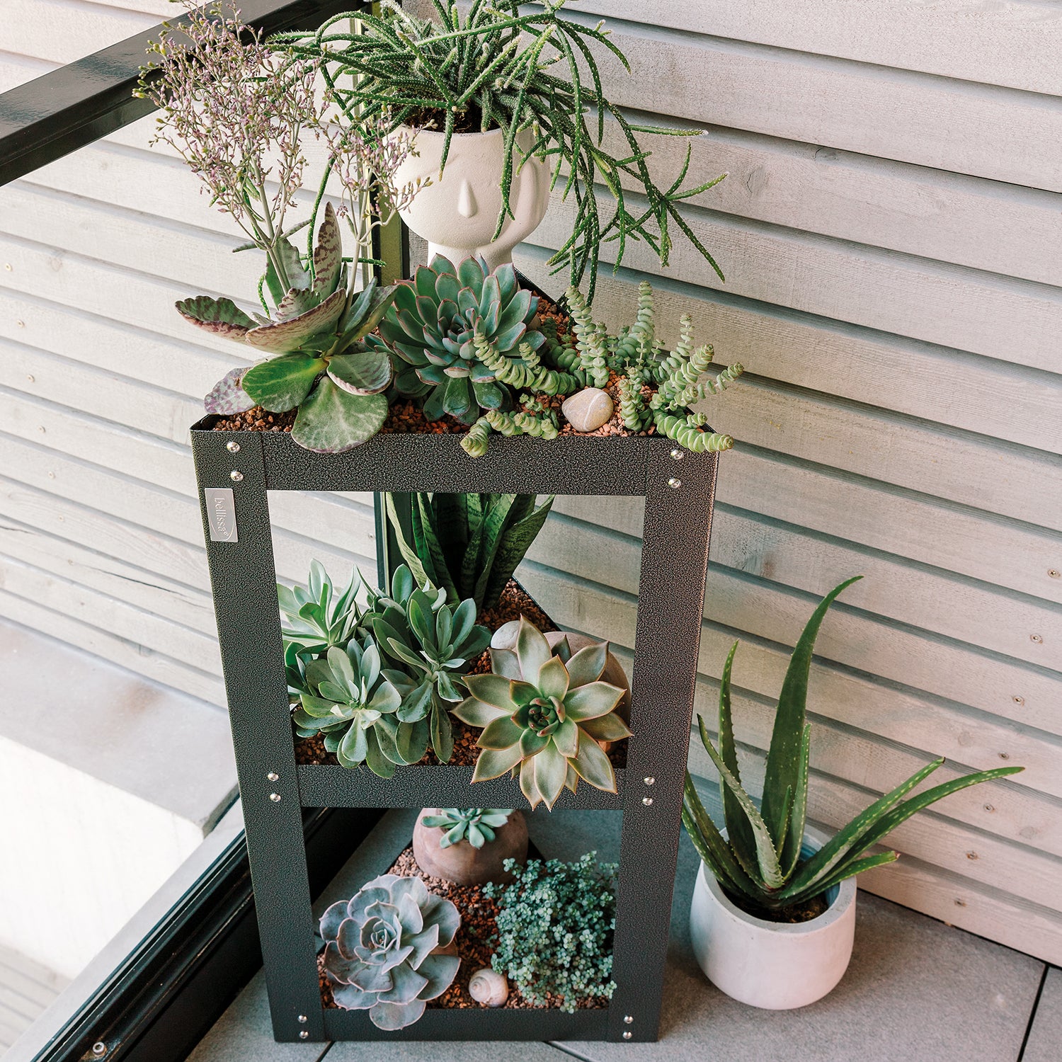 Dieses dreieckige Pflanzenregal wird sowohl drinnen als auch draußen zum Eyecatcher. Dank der innovativen 2-in-1-Stecktechnik, kann die Höhe angepasst werden. So kann darauf reagiert werden, wenn Pflanzen unerwartet kräftig wachsen.