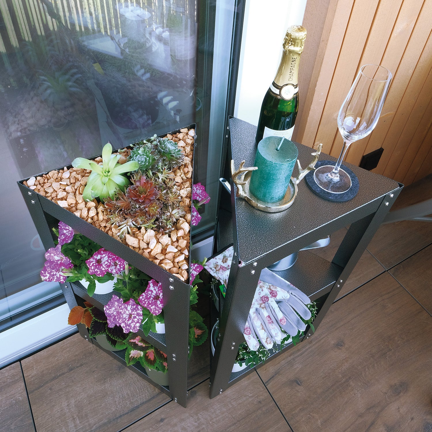bellissa TRIANGOLO Pflanzenregal aus Stahl in Anthrazit - flexibles Stecksystem zur Anpassung der Höhe - 35 cm x 35 cm x 71 cm (L x B x H) - feuerverzinkt & pulverbeschichtet - für innen & außen