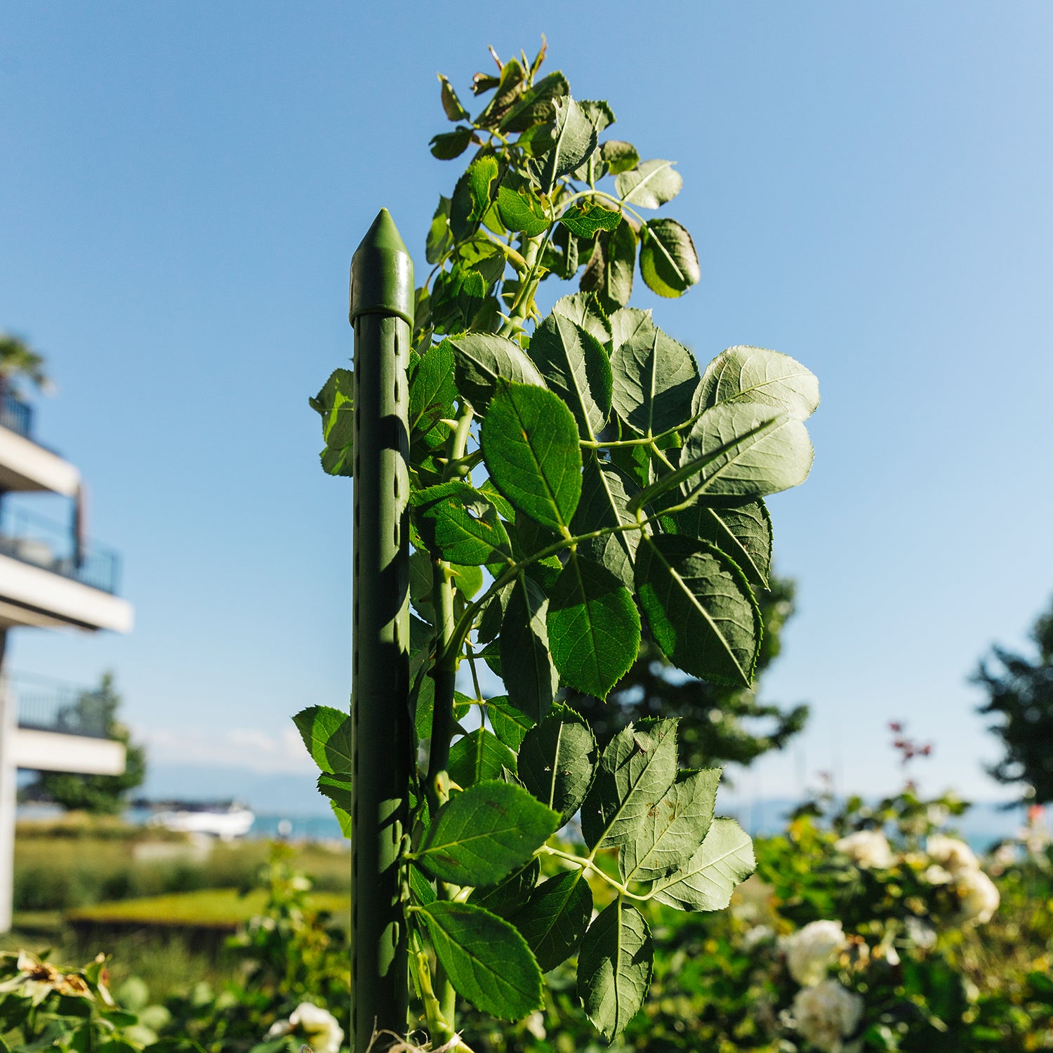 Der Pflanzstab ist aus wetterfestem Material gefertigt, das ihn langlebig macht und für den Außenbereich geeignet ist.