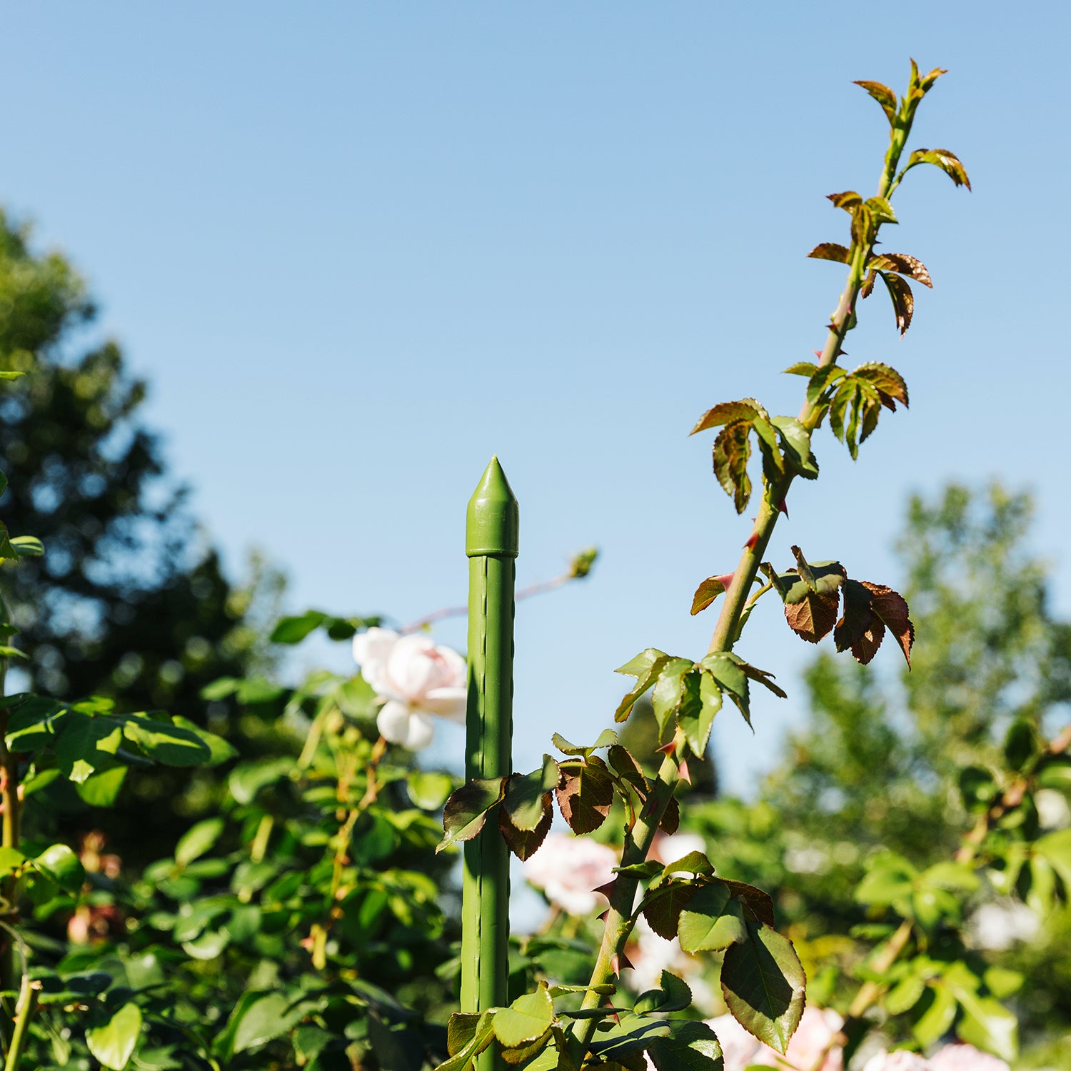 Die unauffälligen, grünen, nützlichen Stützen geben deinen Gewächsen einen sicheren Halt. Sie eignen sich für alle hochwachsenden Pflanzen im Beet, Hochbeet oder Pflanzgefäß. Wir haben passende Höhen für Sträucher, Hochstämme, langstielige Blumen, für Bohnen & Klettermaxe. Der stabile Stahlrohrkern ist kunststoffummantelt und wetterfest. Die Kappen sind mit dem Pflanzstab wasser- und luftdicht verbunden und somit robust und witterungsbeständig.
