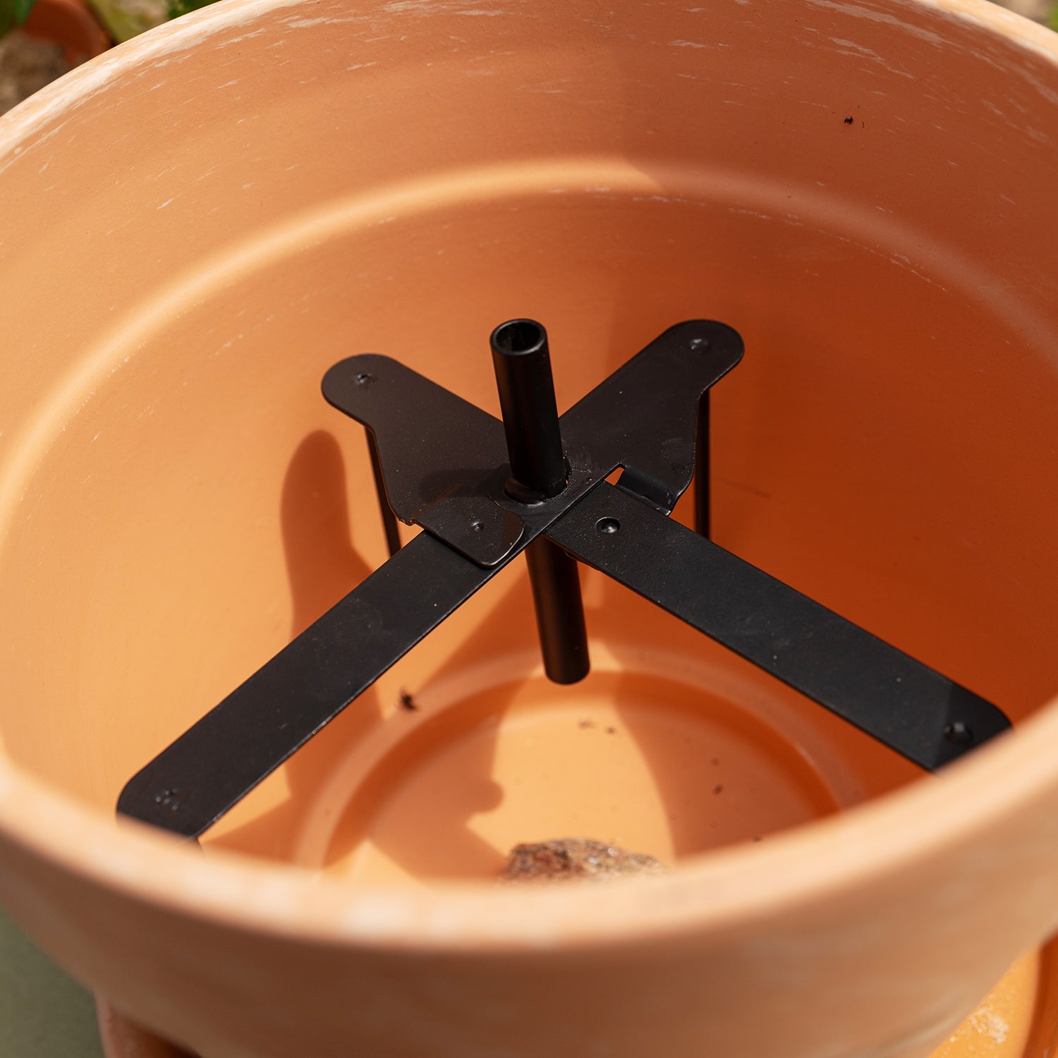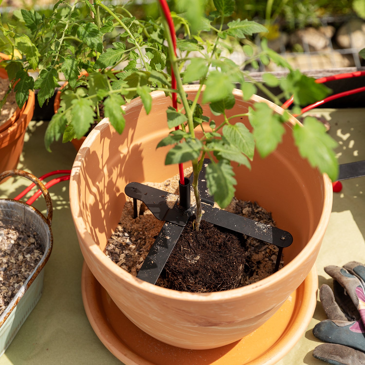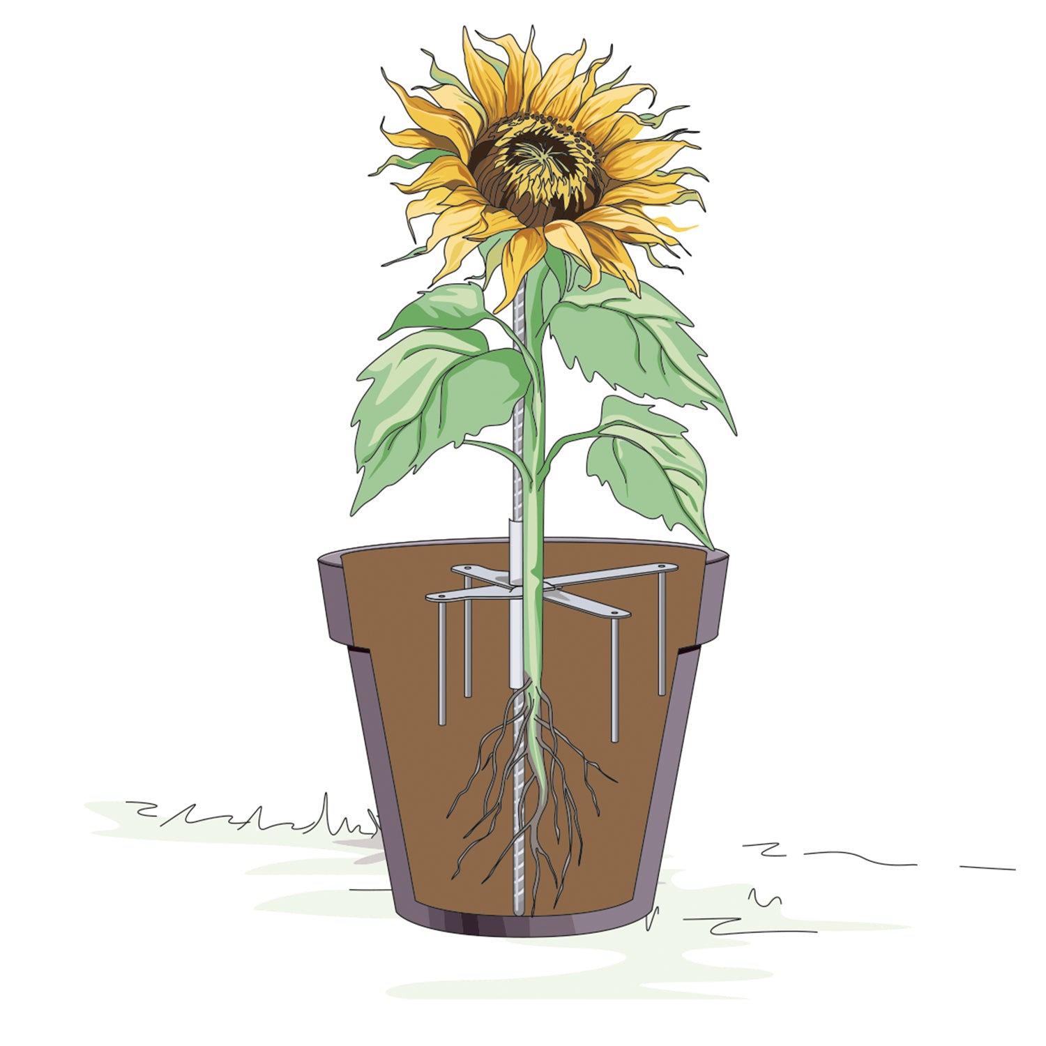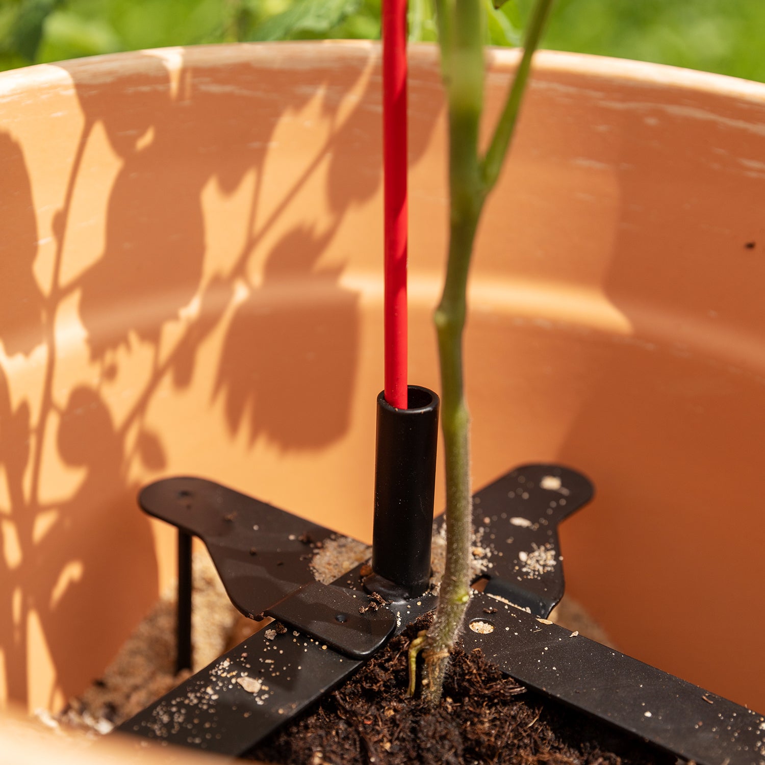 Der Pflanzstabhalter wird einfach im Garten, auf der Terrasse oder dem Balkon aufgestellt. Ein Pflanzstab kann in die Halterung eingesetzt werden, um Kletterpflanzen optimal zu stützen.
