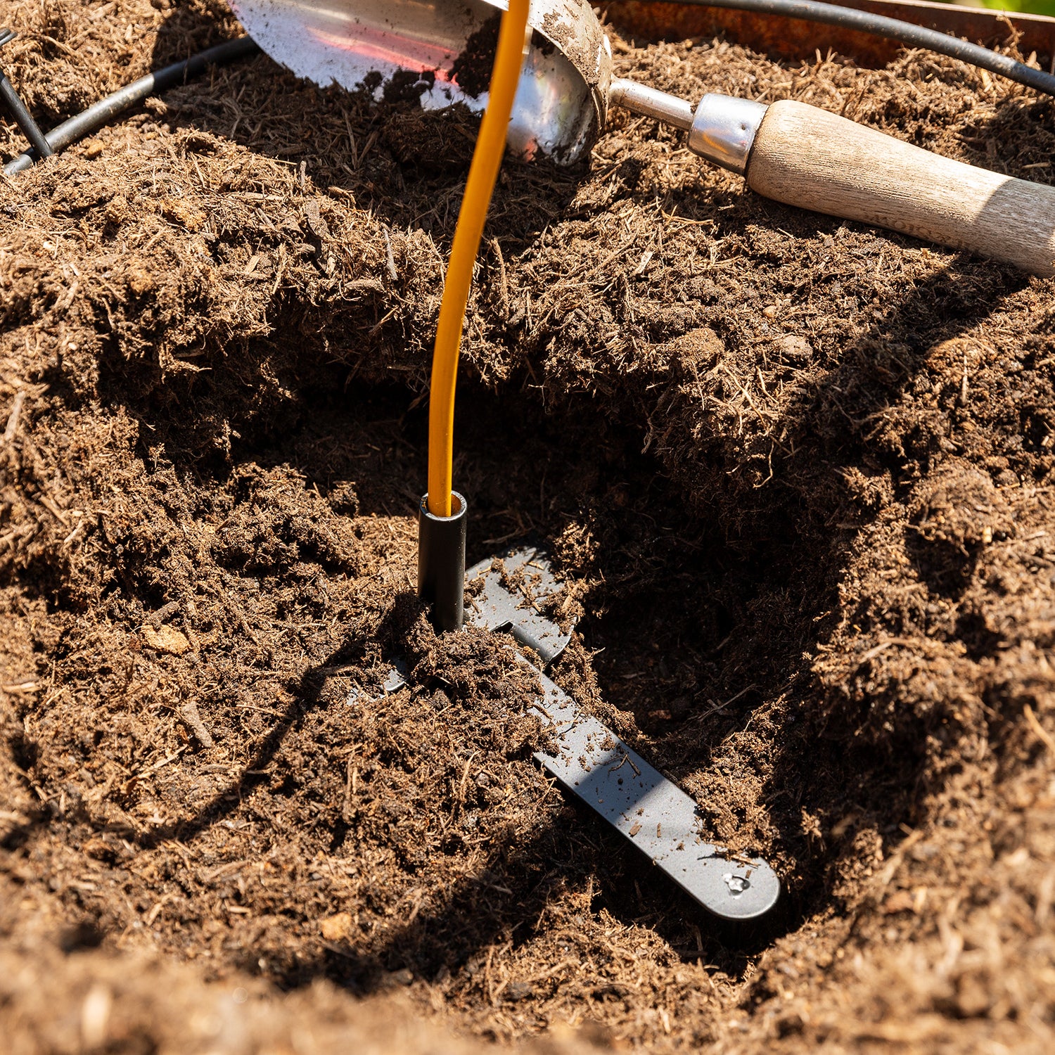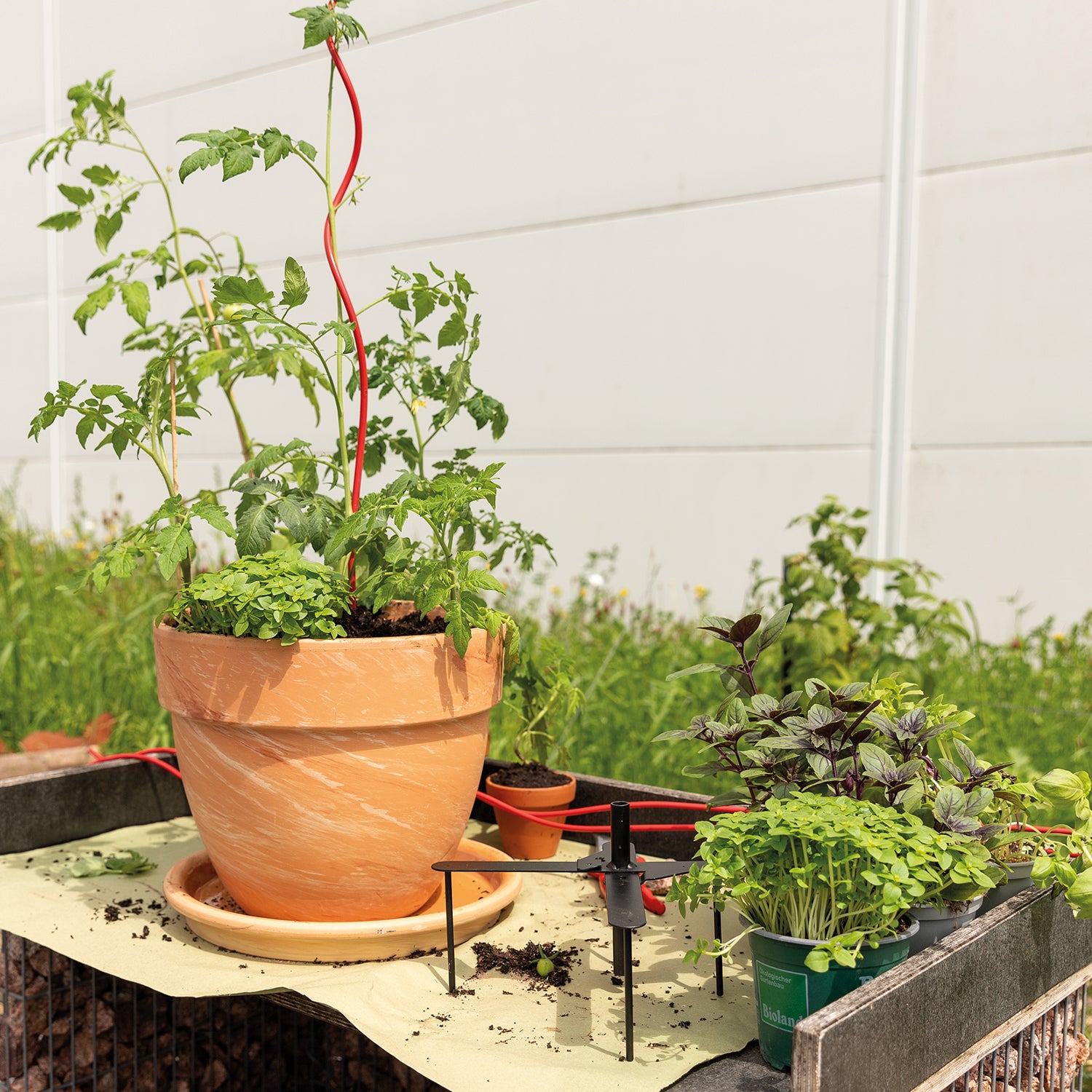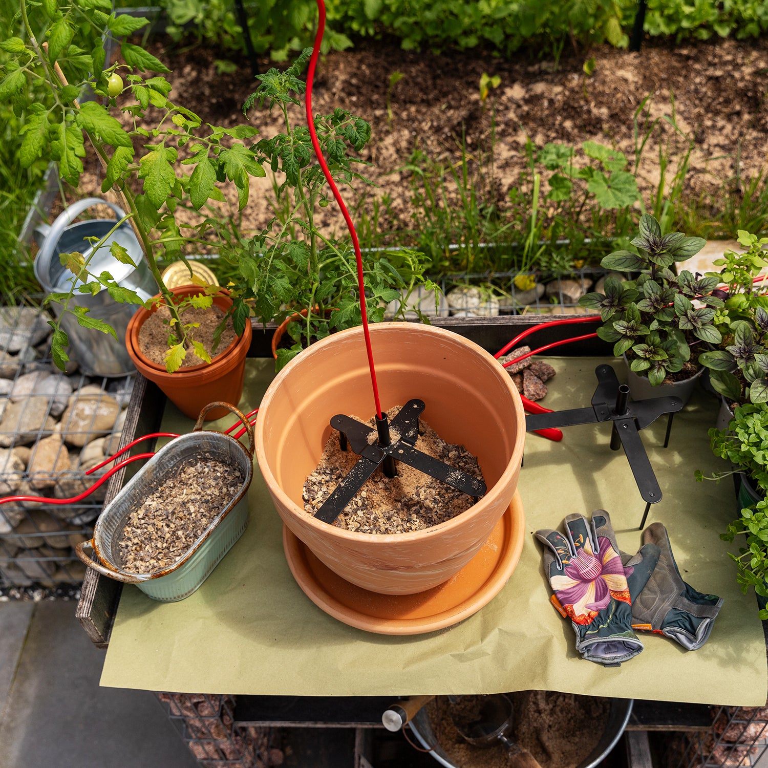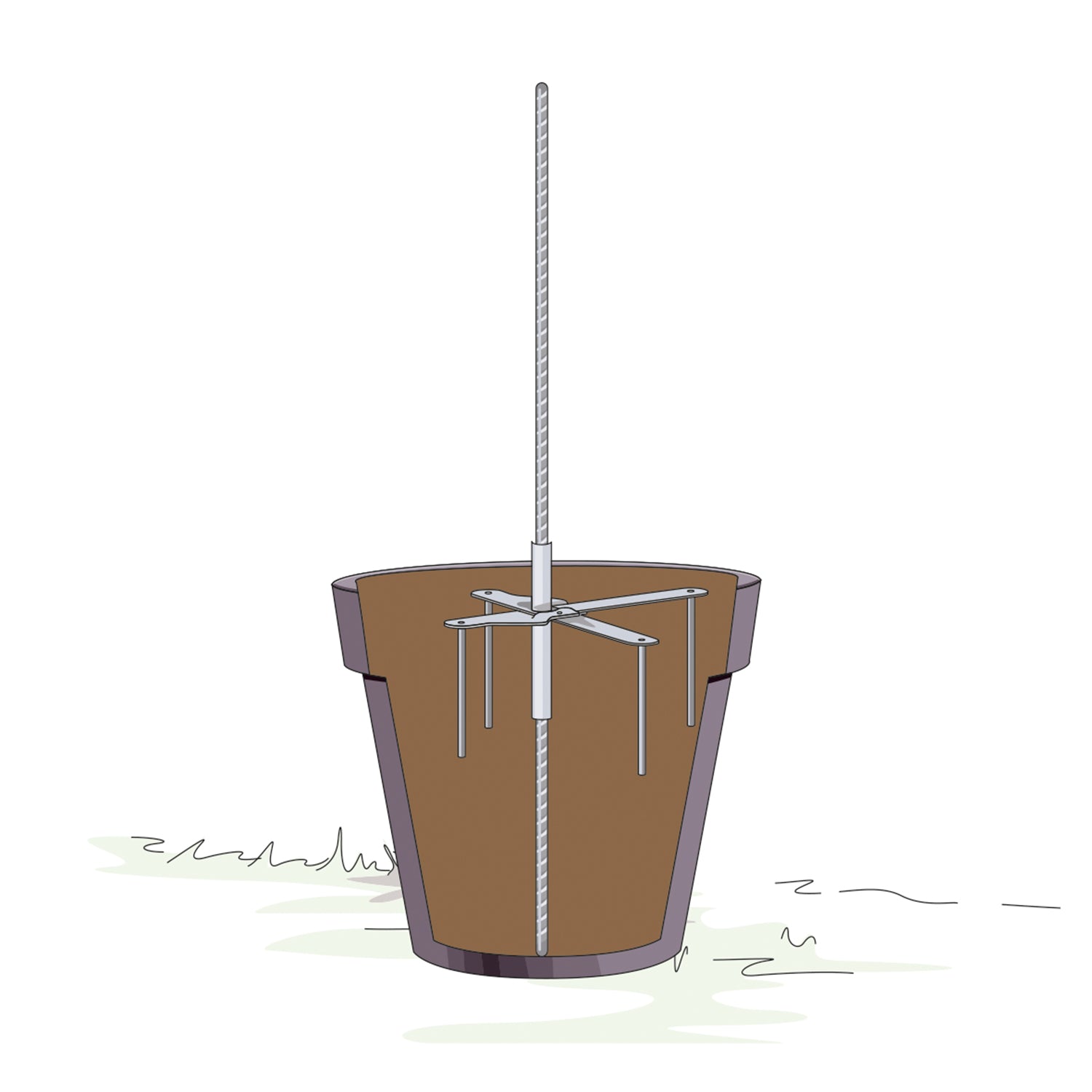 Der Pflanzstabhalter wird einfach im Garten, auf der Terrasse oder dem Balkon aufgestellt. Ein Pflanzstab kann in die Halterung eingesetzt werden, um Kletterpflanzen optimal zu stützen.