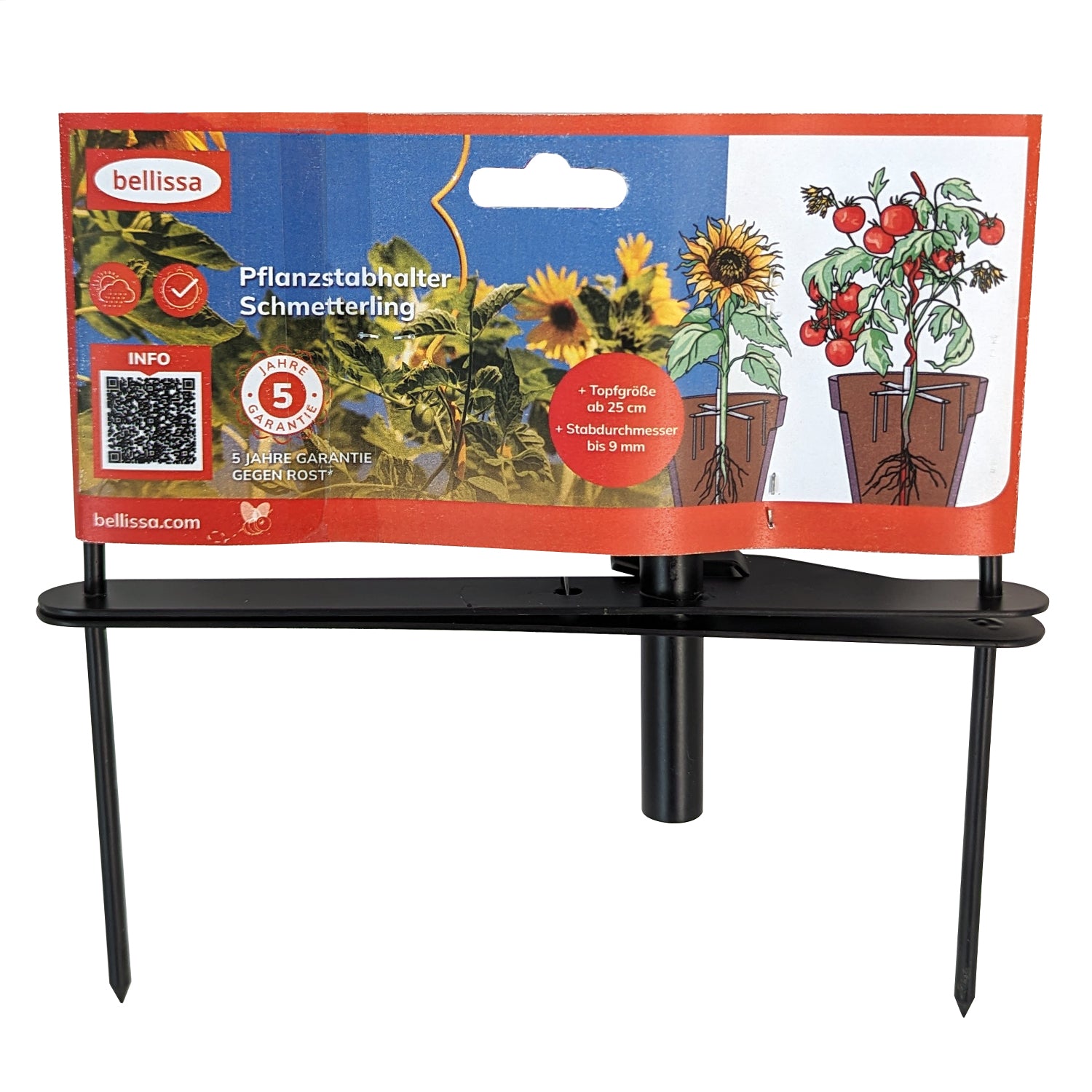 Der bellissa Pflanzstabhalter Schmetterling ist eine dekorative Halterung für Pflanzstäbe, die gleichzeitig einen Blumentopf mit einem Durchmesser von bis zu 25 cm aufnehmen kann. Er eignet sich ideal zur Unterstützung von Kletterpflanzen.