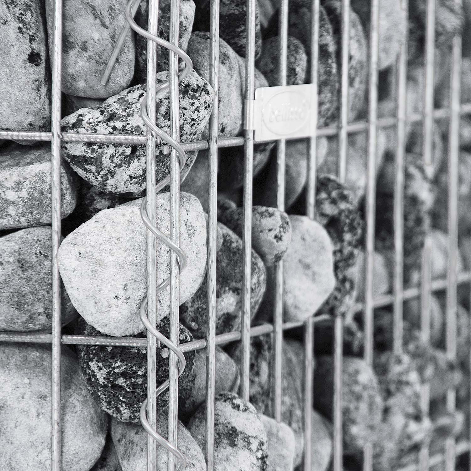 Die Spiralen lassen sich einfach in die Gittermatten eindrehen, was eine schnelle und unkomplizierte Montage ermöglicht. Die Lieferung erfolgt als Bausatz ohne Steinfüllung.