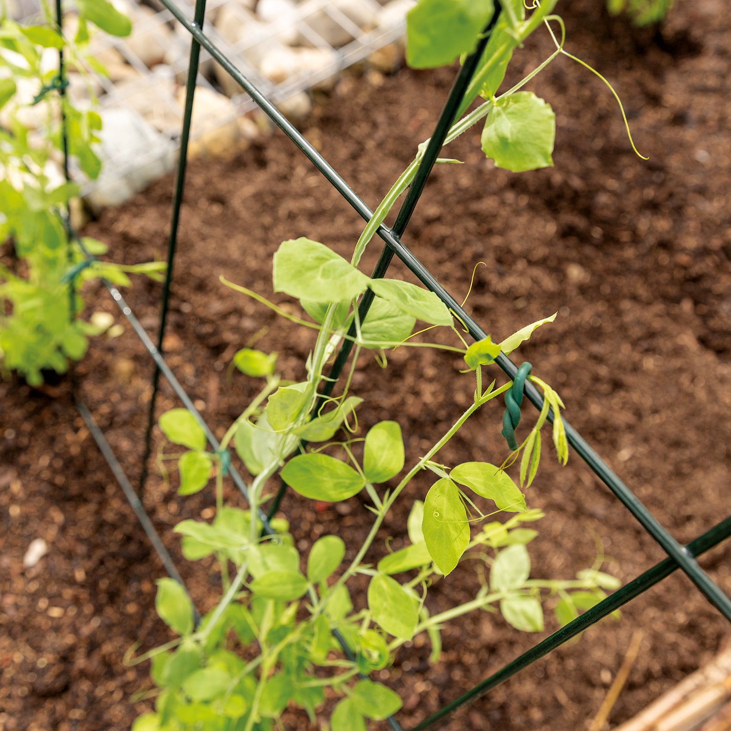 Das Rankgitter kann direkt in die Erde gesteckt oder an Wänden, Zäunen oder Hochbeeten befestigt werden. Es eignet sich für verschiedene Kletterpflanzen wie Rosen, Efeu oder Bohnen.