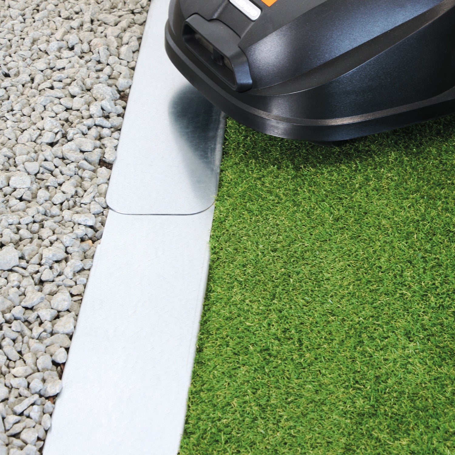 Die Rasenkante ist so breit, dass ein Rad des Rasenmähers problemlos darauf Platz findet, was die Rasenkante zur idealen Lösung für eine einheitlich hohe Rasenbegrenzung macht. Außerdem dient sie als umweltfreundlicher Unkrautschutz.