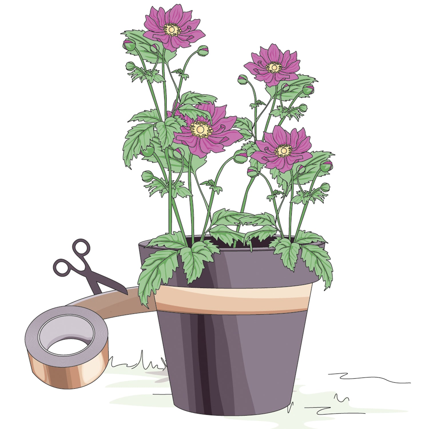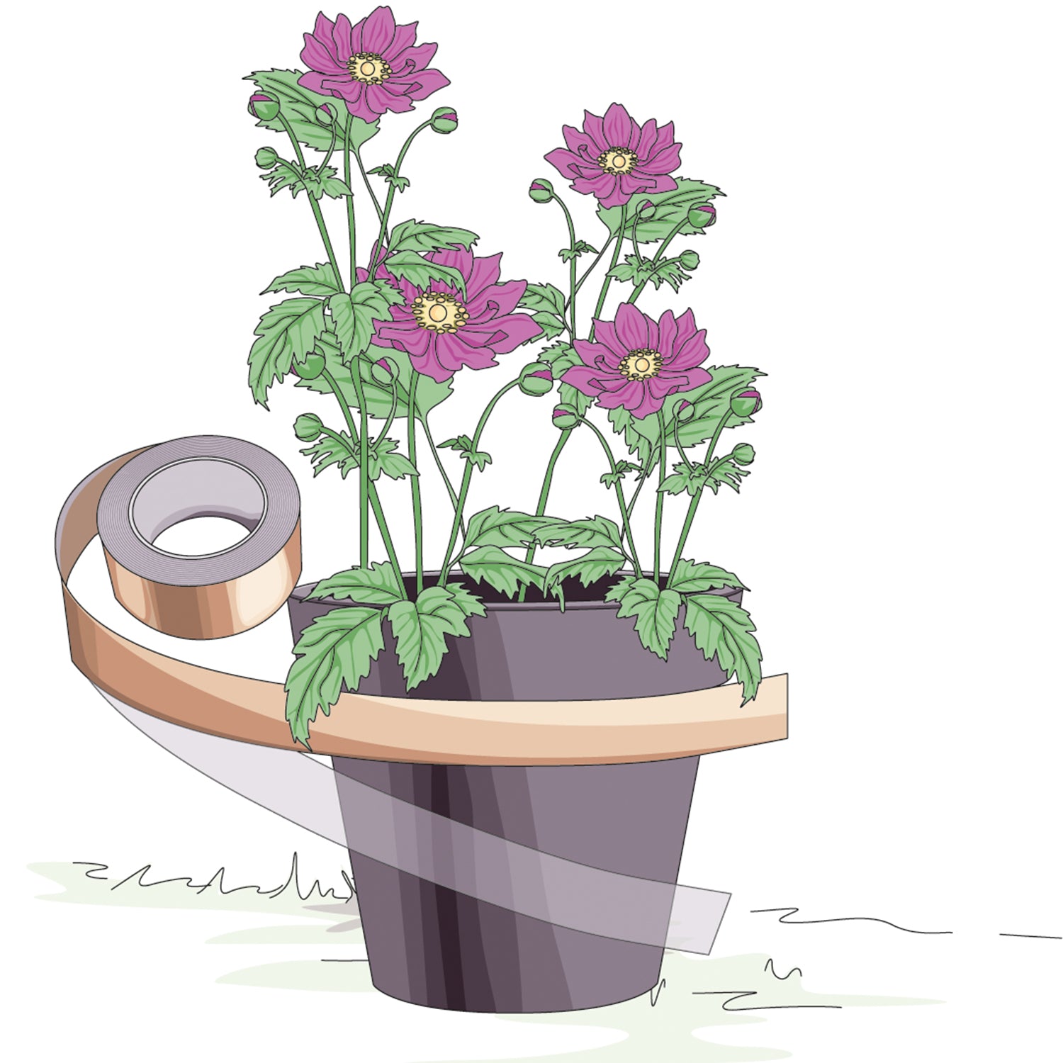 Das Kupferband erzeugt bei Kontakt mit Schnecken eine leichte elektrische Reaktion, die die Schnecken abschreckt und sie davon abhält, über das Band zu kriechen.