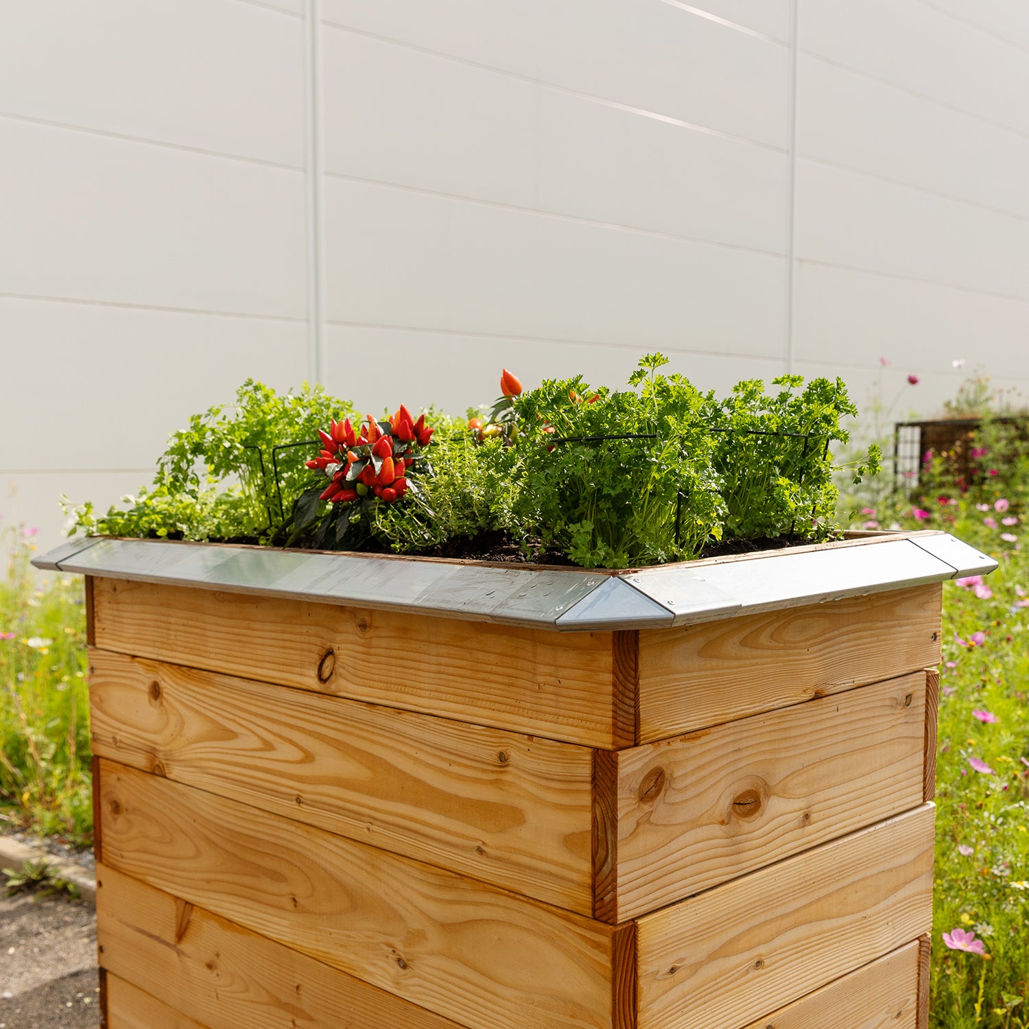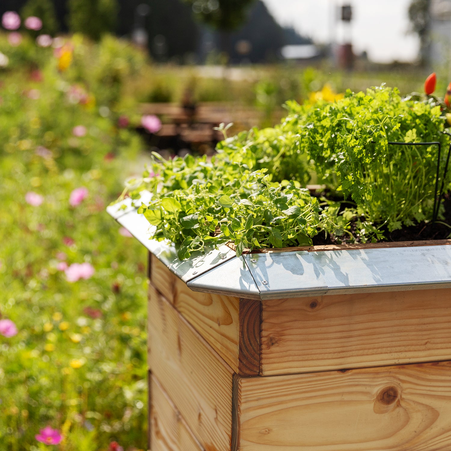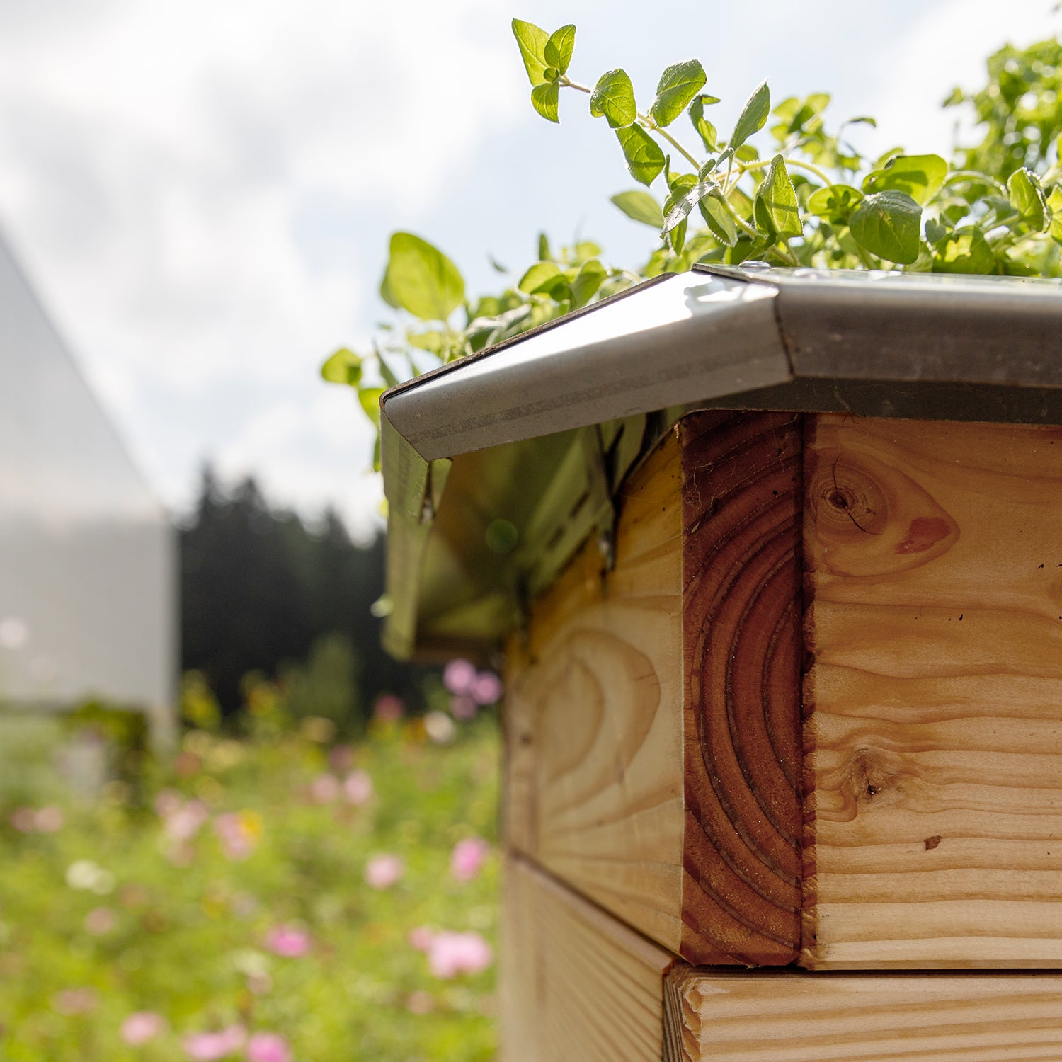 Das Schneckenblech eignet sich für rechteckige oder quadratische Hochbeete und kann bei Bedarf individuell angepasst werden.
