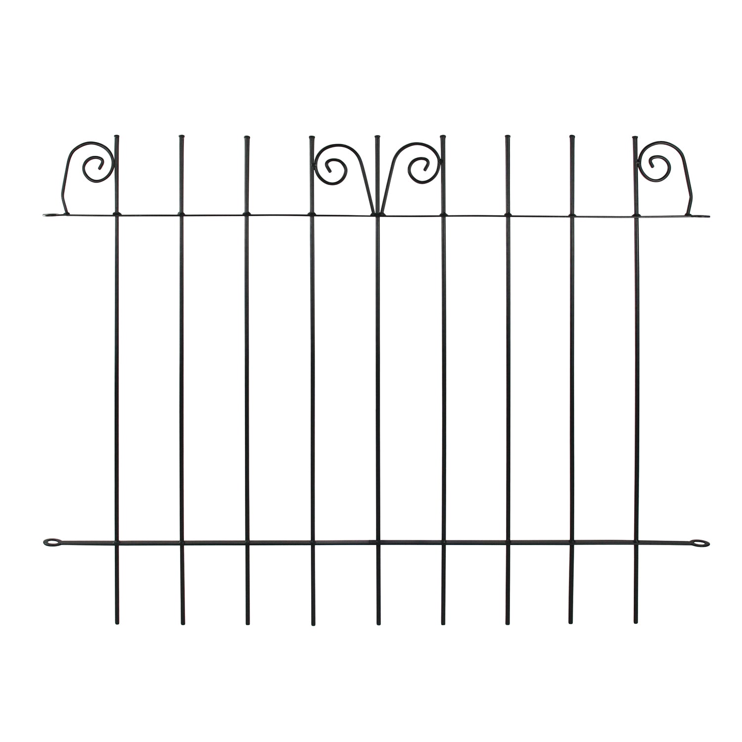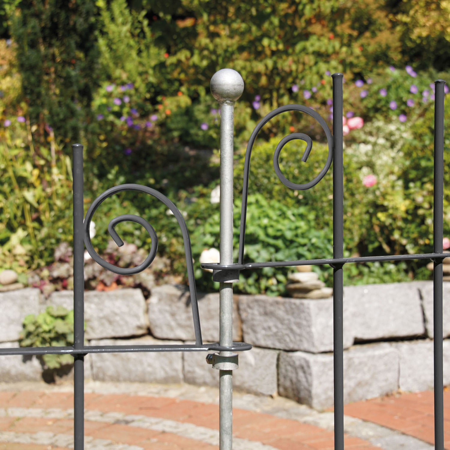 Mit diesem filigranen und dezent verzierten Zaun setzt man nicht nur einen schönen Akzent, sondern erhält eine schützende Barriere für Mensch und Tier. Aufgrund der großen Öffnungen passt er sich luftig und unauffällig in das Erscheinungsbild des Gartens ein und wird von den einfachen Schnörkelelementen geprägt.
