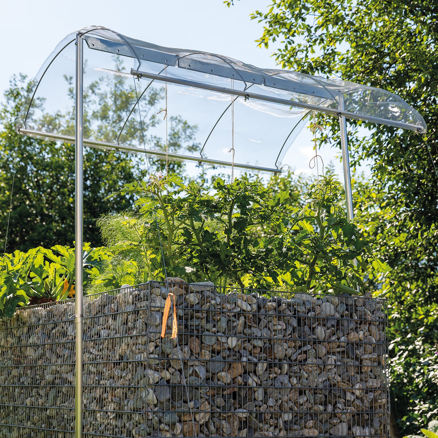 Das Gestell besteht aus stabilen Aluminium-Gewebe-Rohren, die leicht und wetterbeständig sind. Die Abdeckung schützt die Pflanzen vor Witterungseinflüssen.