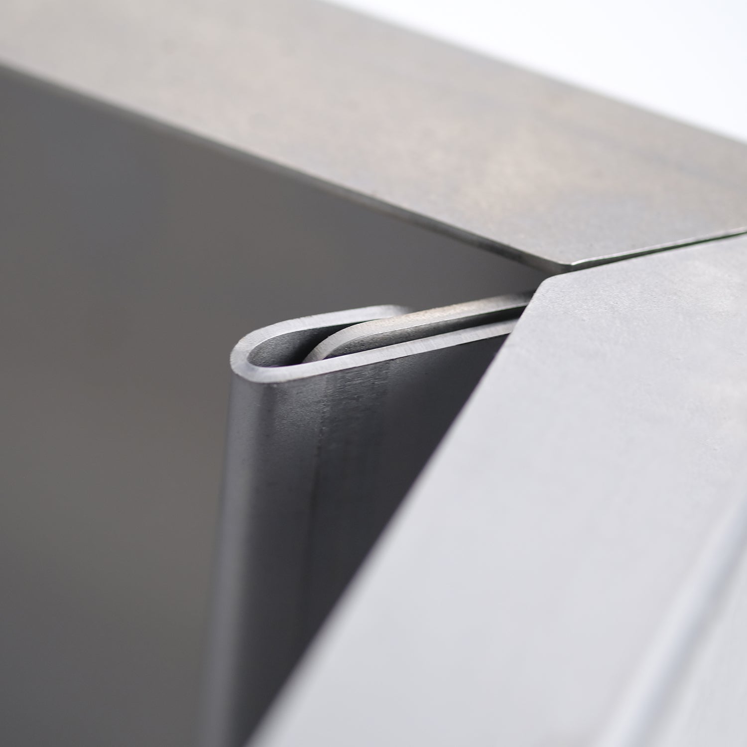 Der Rahmen besteht aus hochwertigem Cortenstahl mit einer Stärke von 1,5 mm. Dieses Material bildet mit der Zeit eine charakteristische Rostpatina, die das Produkt vor weiterer Korrosion schützt.