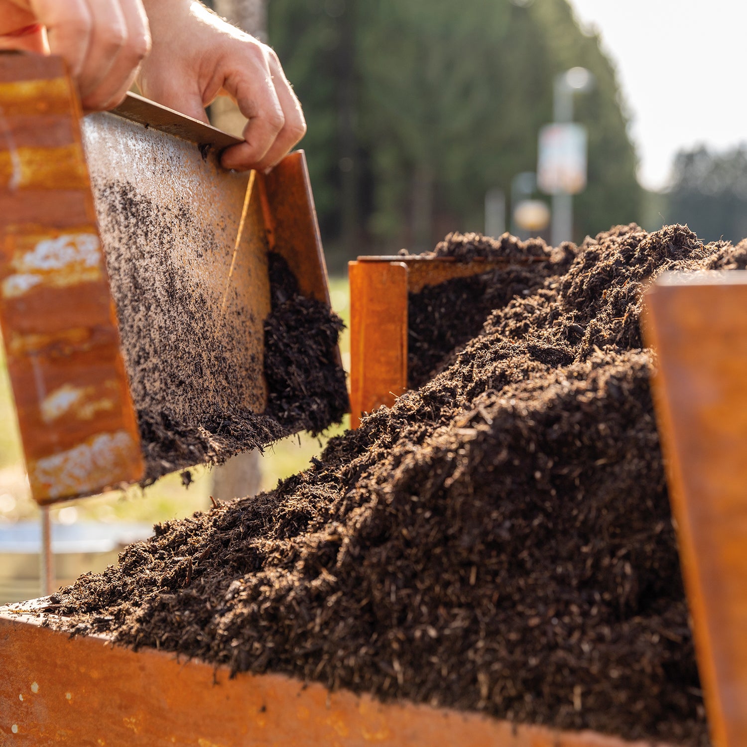Cortenstahl ist äußerst langlebig und wetterbeständig. Durch die entstehende Rostpatina erhält der Rahmen eine natürliche Optik und ist gleichzeitig vor weiterer Korrosion geschützt. Dadurch eignet er sich besonders gut für den Außenbereich.