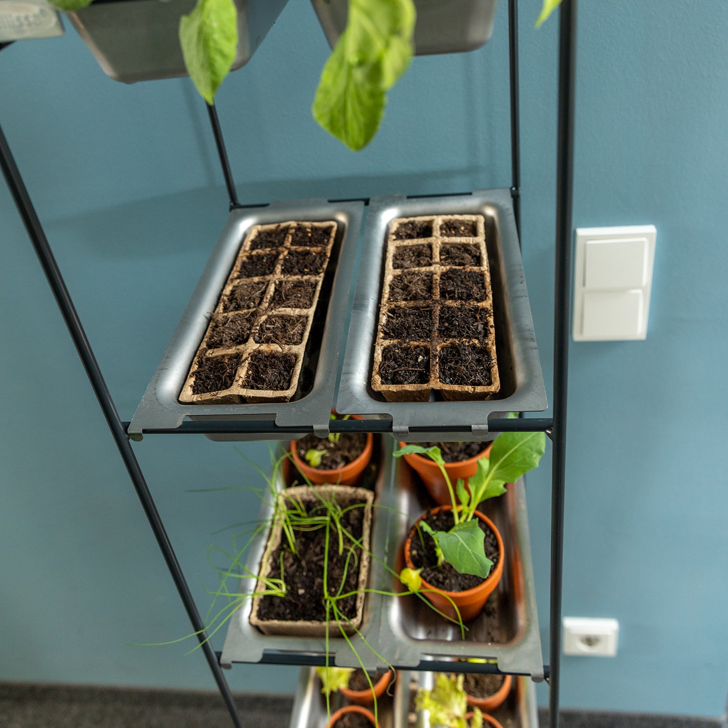 Das Regal ist ideal für eine Vielzahl von Pflanzen, einschließlich Kräutern, kleinen Blumen und saisonalen Pflanzen. Durch die vertikale Anordnung ist es besonders gut für Kletterpflanzen geeignet.