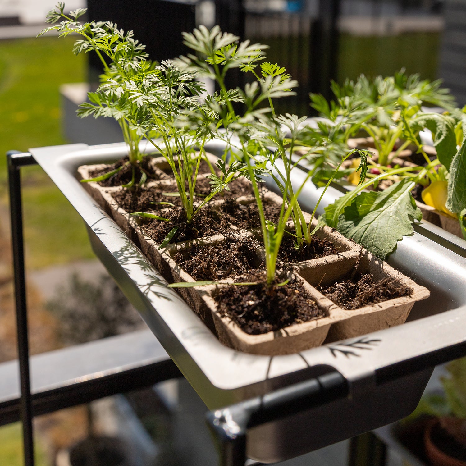 Das Pflanzregal hat eine Höhe, die es optimal für vertikales Gärtnern auch auf kleinem Raum macht. Die genauen Maße finden Sie auf der Produktseite unter den Spezifikationen.