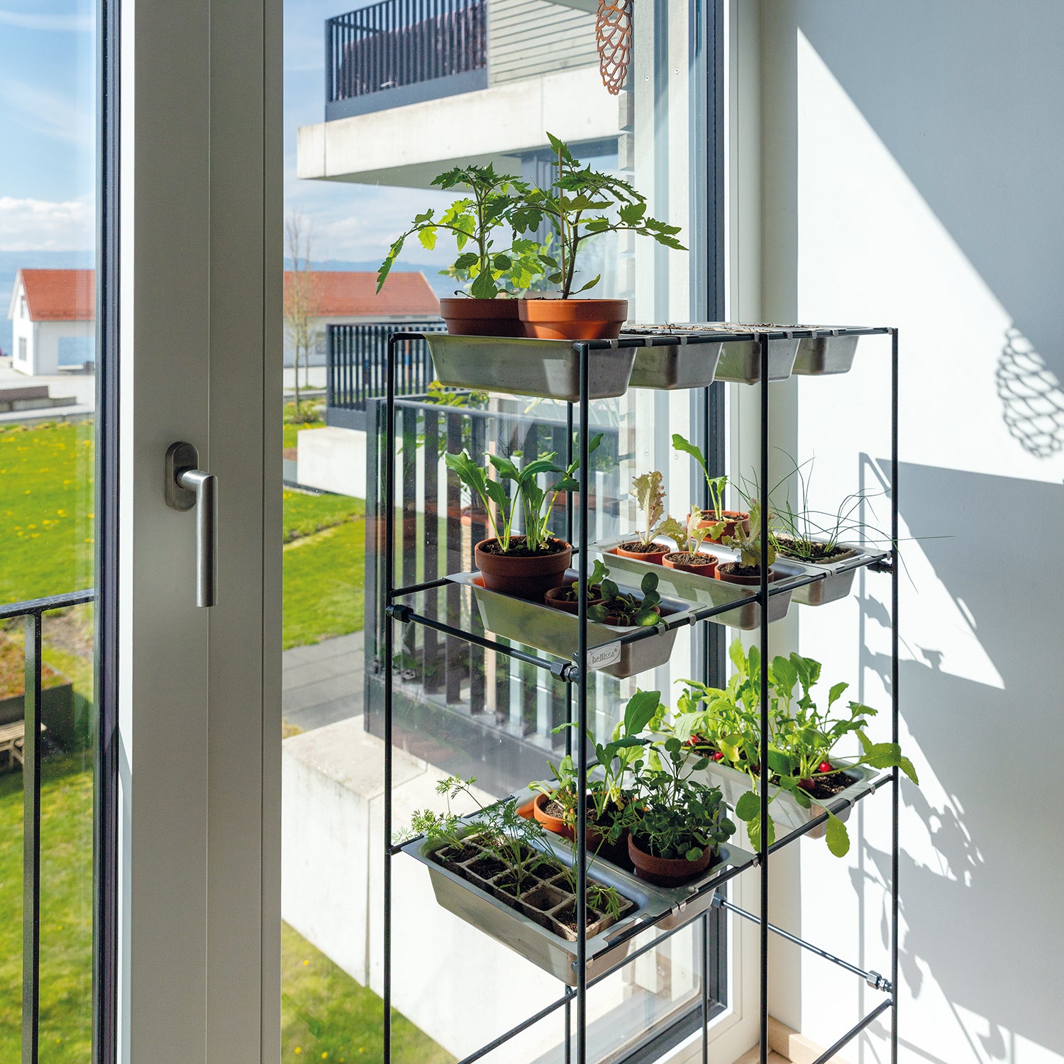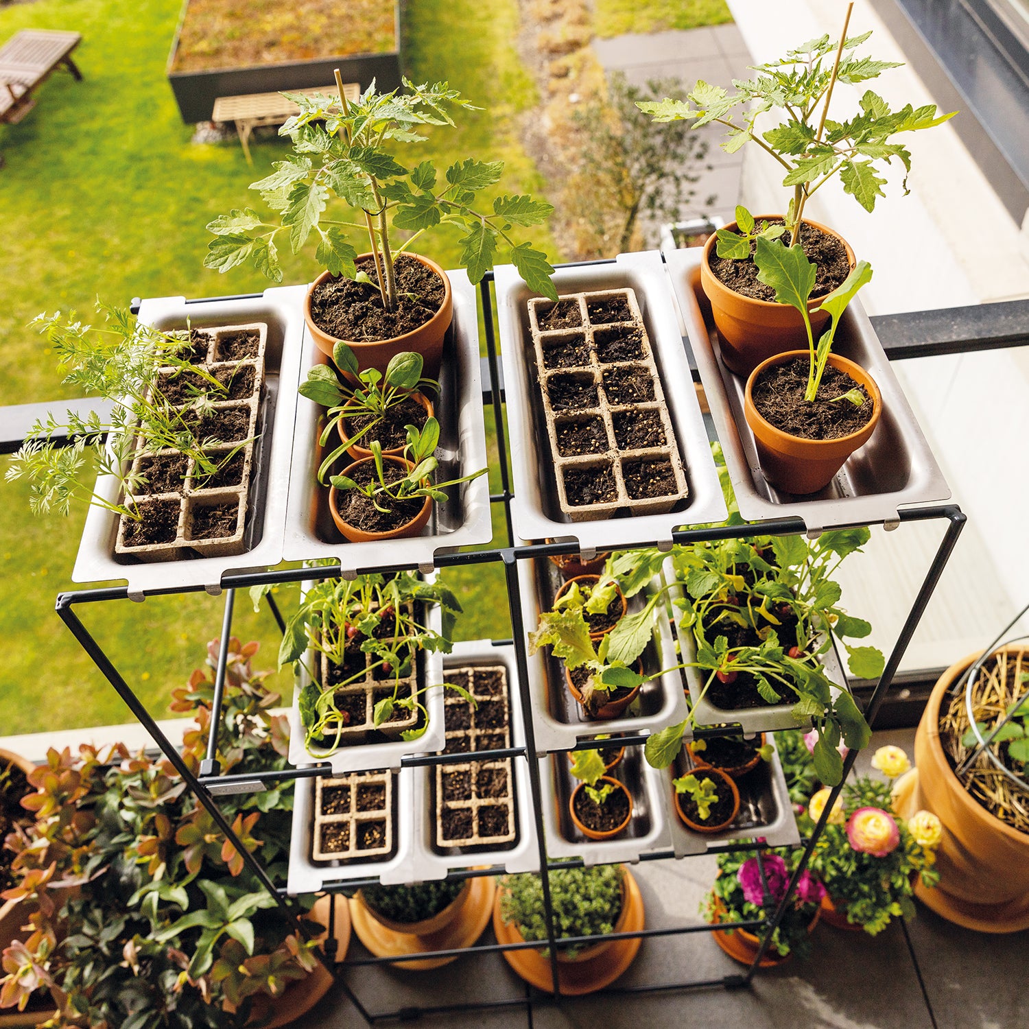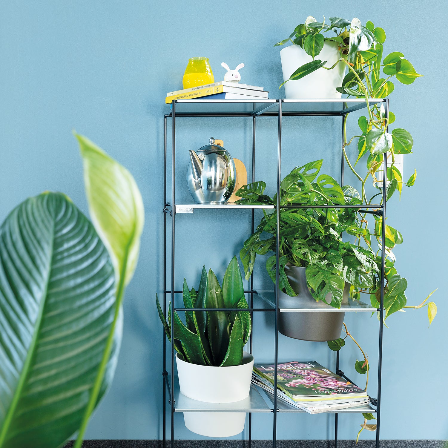 Das Pflanzregal kann freistehend verwendet oder für zusätzliche Stabilität an einer Wand montiert werden. Alle notwendigen Montageteile und eine Anleitung sind im Lieferumfang enthalten.
