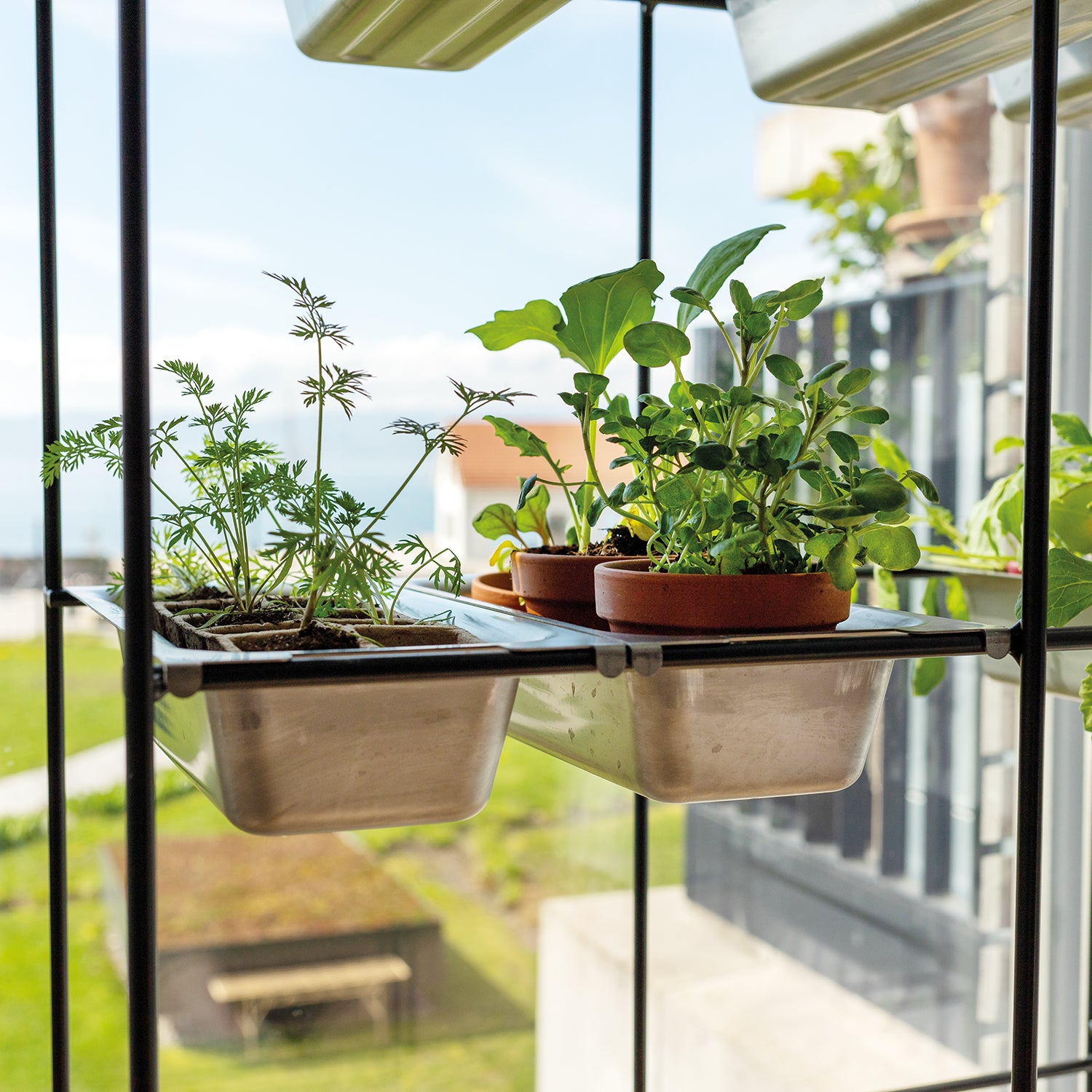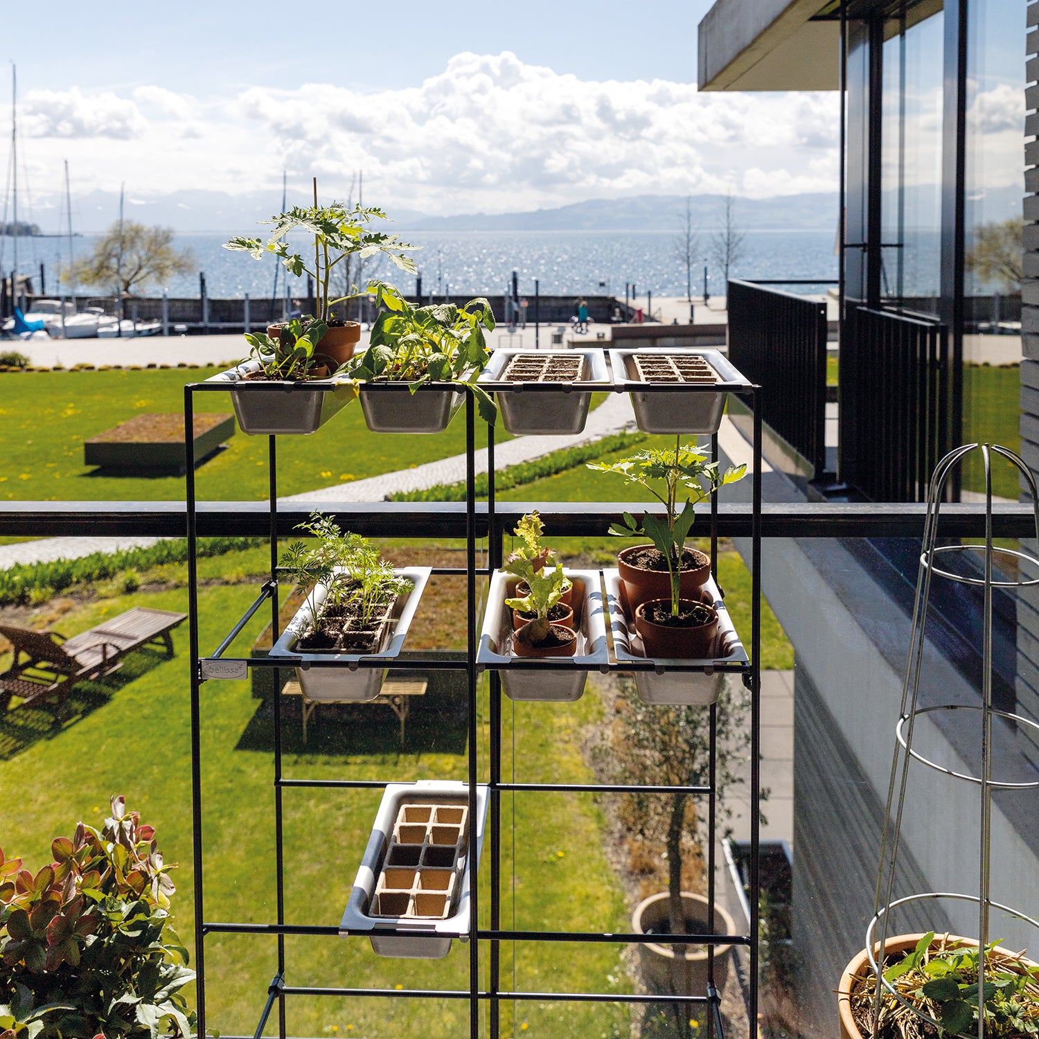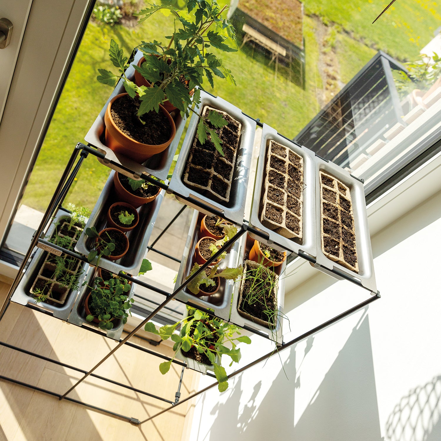 Das Pflanzregal kann freistehend verwendet oder für zusätzliche Stabilität an einer Wand montiert werden. Alle notwendigen Montageteile und eine Anleitung sind im Lieferumfang enthalten.