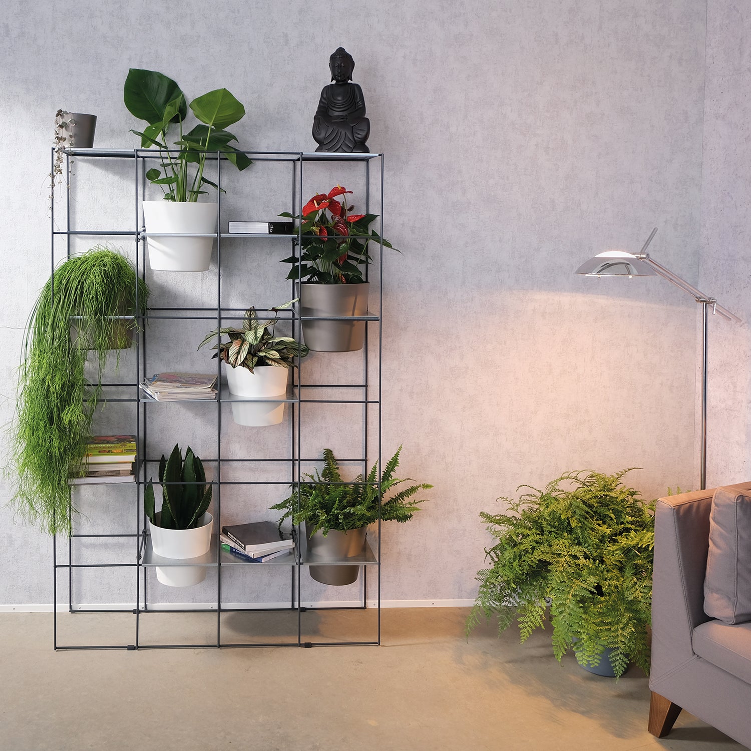 Egal ob Raumtrenner, Organisations- oder Klimahelfer, FILO bietet auf mehreren Ebenen viel Platz für Pflanzen. Mit Hilfe der Fachböden entscheidet man selbst, wie das Regal am Besten genutzt und eingesetzt werden kann.